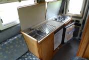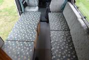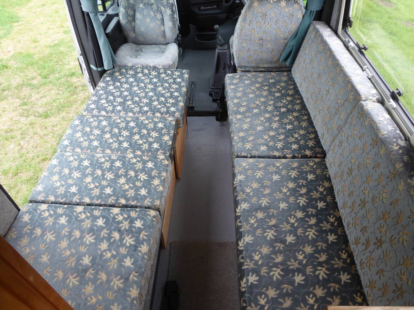 single bed, 1 travelling seat that becomes a single bed, 1 swivel seat, kitchen,