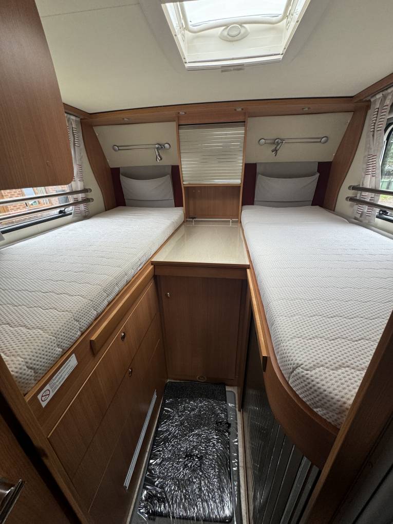 To the rear are two fixed single beds above the garage with