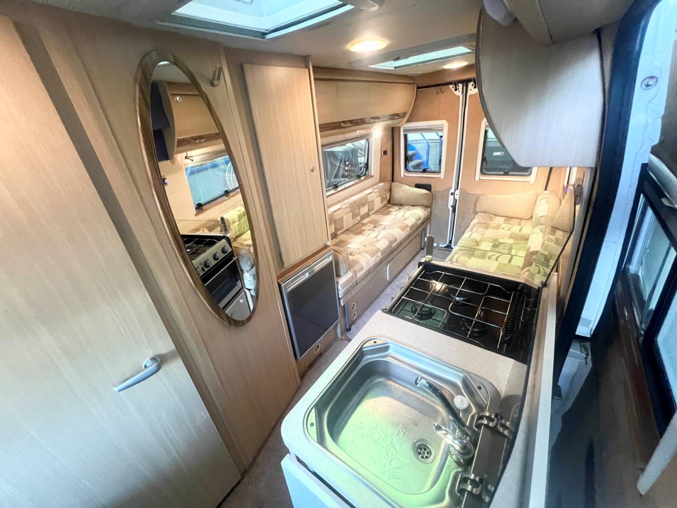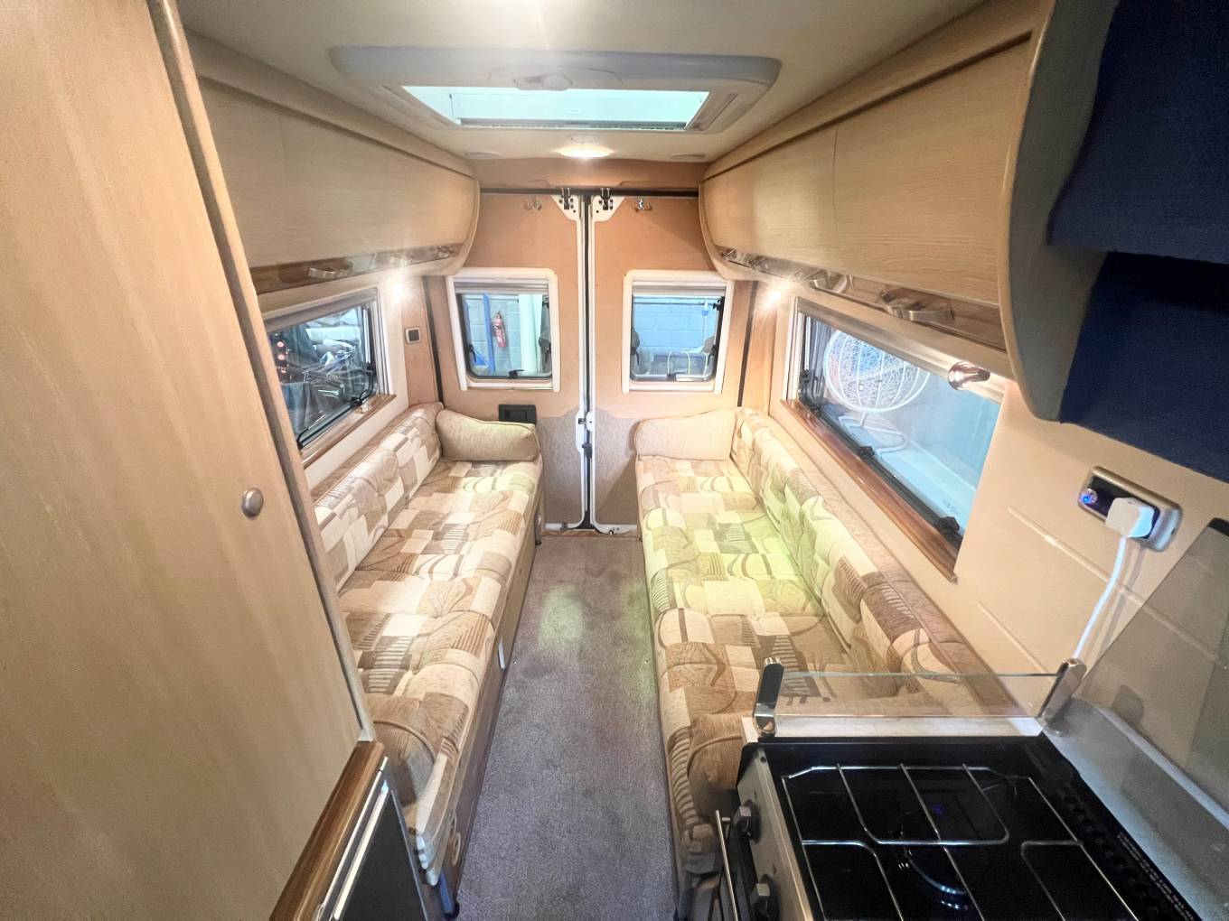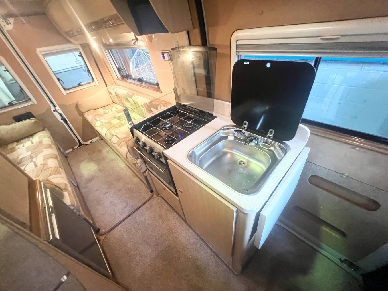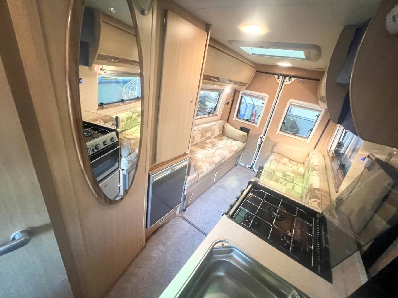This Fantastic Swift Mondial RL, 2 berth, rear lounge campervan. spacious and airy with real sense of space, yet is only 6.00 m long. There are 2 seatbelts and it sleeps 2 people spaciously, with either 2 singles, or full double bed. It has plenty of storage space above and below the seats. The galley kitchen is well equipped with 3-gas burner cooker, SMEV grill and oven, sink, fridge with freezer. In the washroom, there is a toilet, folding sink and shower attachment. There are several lights in the rear lounge and approx. Up front there is cab air conditioning, 6 speed manual transmission, wind out canopy.