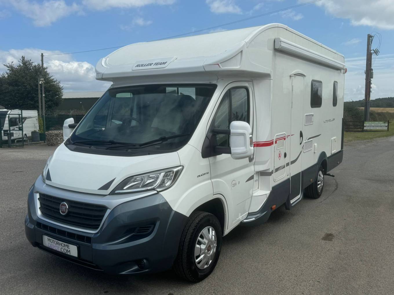 Motorhome Depot Farnsfield Retail offer this wonderful 4 berth 6 belt Roller team Auto-Roller 259 P. The vehicle is 6.82m long and 2.3m wide making it a nice size to get around and even to the shops! The 259P comes with a friendly gross vehicle weight of 3500Kg which does mean anybody who holds a full UK license can drive this vehicle legally on the roads. At the very rear of the 259 you have both your French Bed which has lots of storage both above and below and your end washroom.