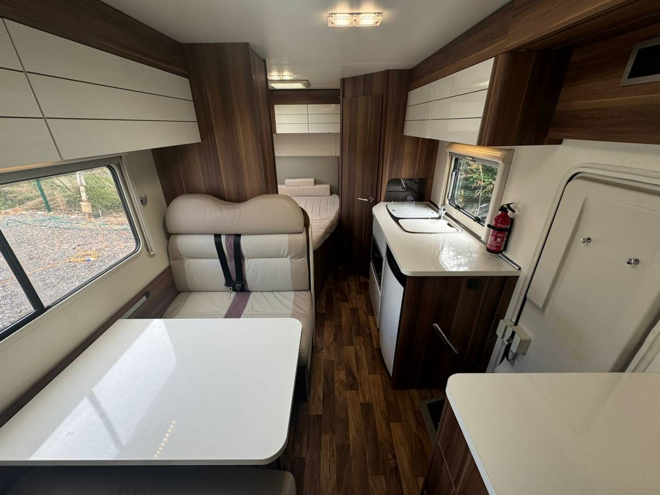 The washroom which you are provided with is extremely desirable due to the fact that Roller Team have built this model with the fully separate shower cubicle, saving getting your feet wet entering this room after the shower has been used like in your mixer washrooms. This space also has a cassette swivel toilet and a full vanity basin unit perfectly positioned for you to use. The kitchen houses all the usual particulars such as; Grill / Oven Combi, Mixer Tap & Basin Unit, 3 Ring Gas Hob, 3 Way Fridge, Large Opening Window, Storage Cupboards and Draws. The kitchen is located on the passenger side of the motorhome right next to the habitation door. The kitchen houses all the usual particulars such as; Grill / Oven Combi, Mixer Tap & Basin Unit, 3 Ring Gas Hob, 3 Way Fridge, Large Opening Window, Storage Cupboards and Draws. The kitchen is located on the passenger side of the motorhome right next to the habitation door.