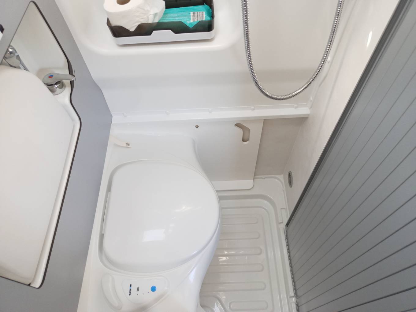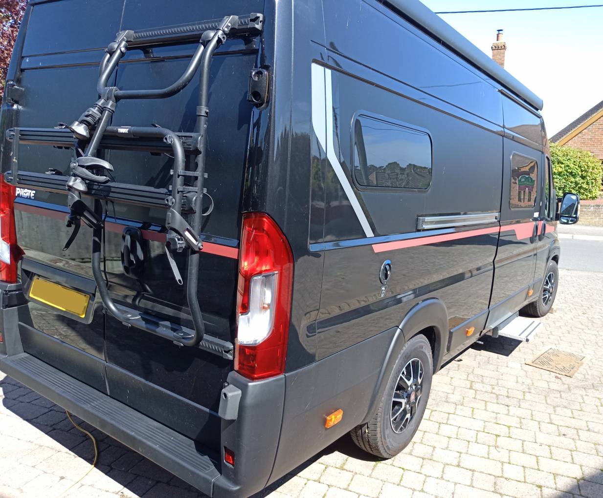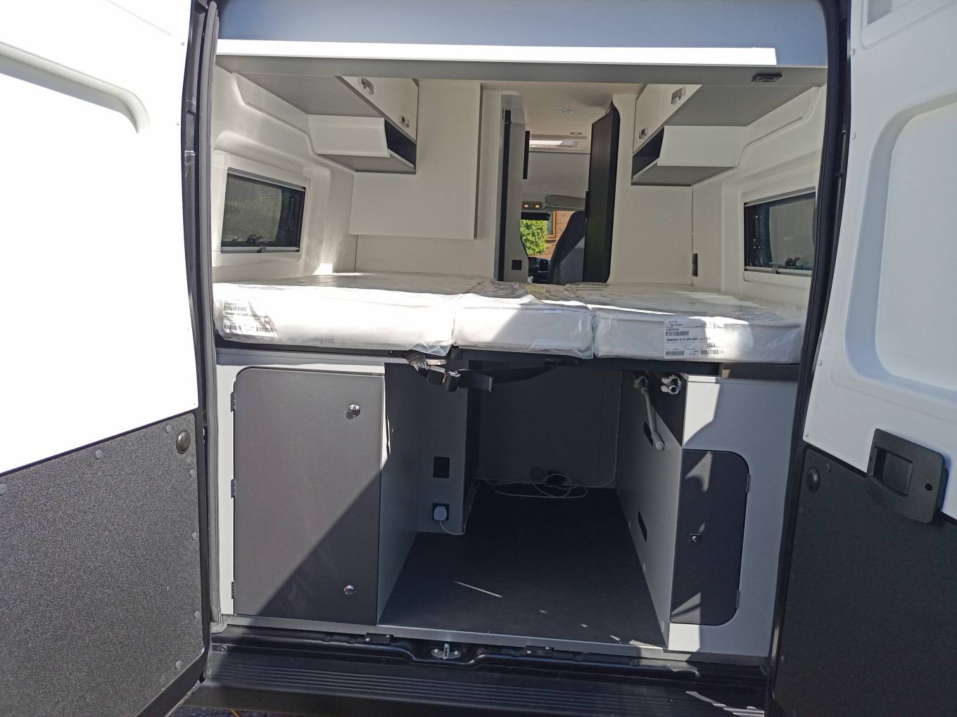 There is an inverter in the garage section with a 700 Watt 230 Volt socket to charge e-bikes etc, not forgetting the lithium battery and solar panel, to keep the leisure battery topped up. The present owner has used a small electric heater via the inverter as a space heater, and that has proven very effective and efficient in keeping the van warm....and there is the standard option of water and space heating on gas, too.