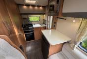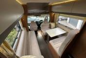 Towards the front of the Motorhome, you have the centre dinette area and here you can travel an extra 2 people all with 3-point belts, this area also makes another double bed by using the dining table and a quick rearrange of the cushions! The supporting side bench is also easily long enough to be used as another single bed if needed.