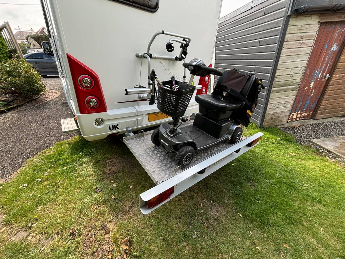 This Motorhome has been fitted with a rear Armitage rack that can hold up to 120 kilos! This also comes with telescopic ramps! The previous customer has used this to carry a mobility scooter however Bicycles, E-bikes and even Motorcycles could be carried on the back!
