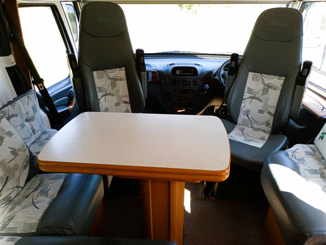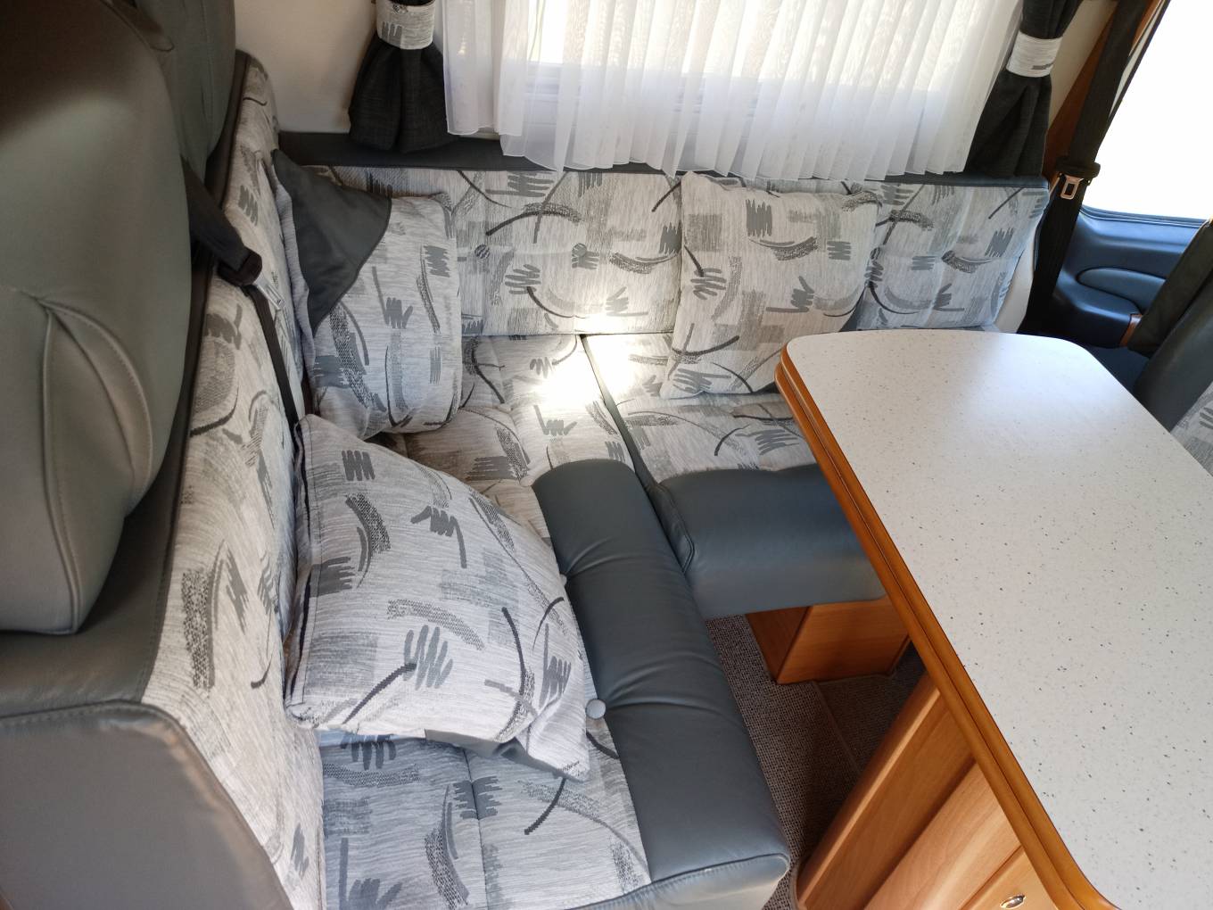 This vehicle is of aluminium construction, and of modular build, with a single section roof, that is load bearing. The extended picture file has the original brochure pictures for added information. The construction method and quality and the care extended to it by the owner makes this motorhome look and feel as if it could be ten years younger. The leather trimmed seats with restrained colours and perfect condition cloth sections are in excellent condition.