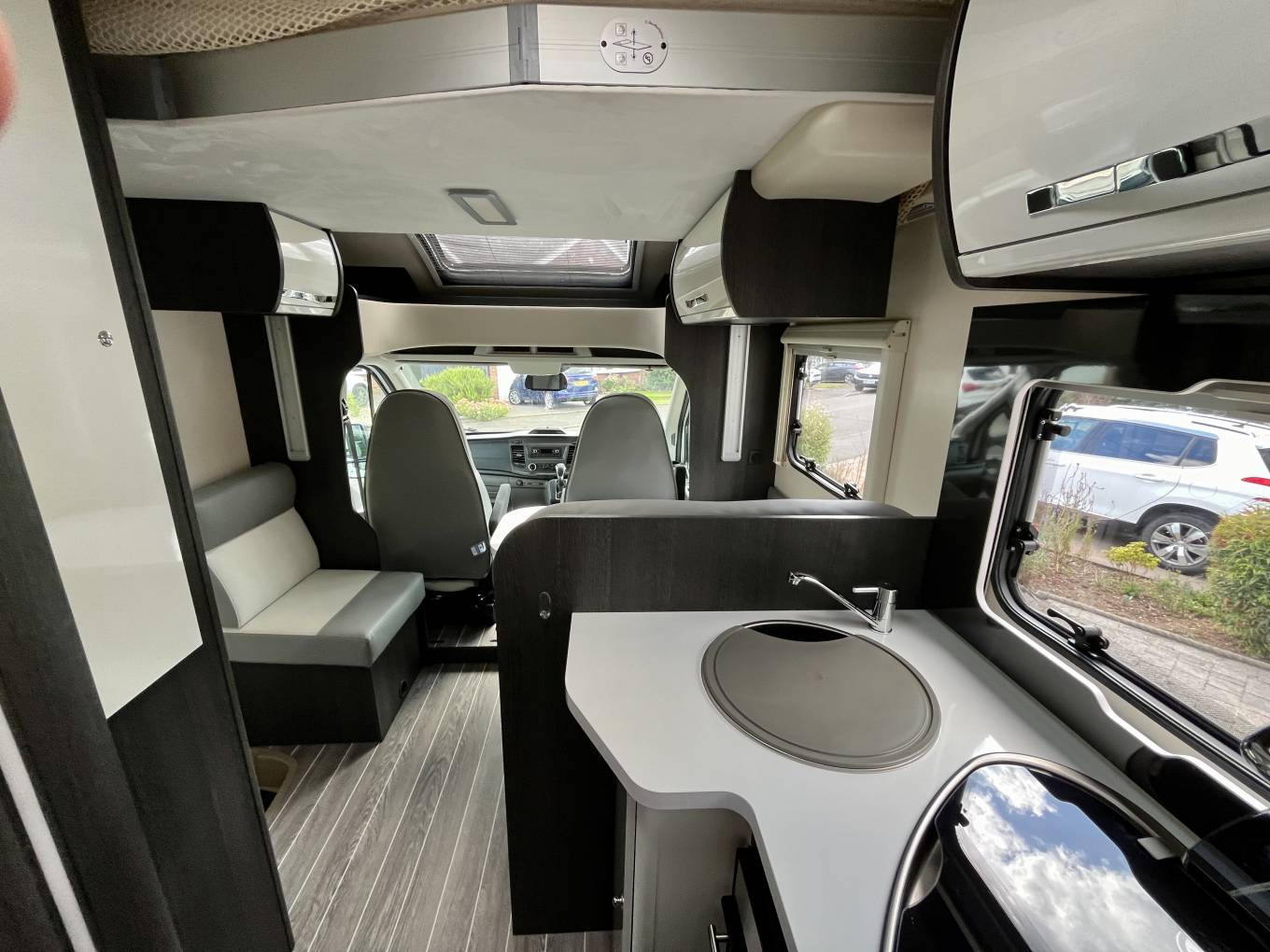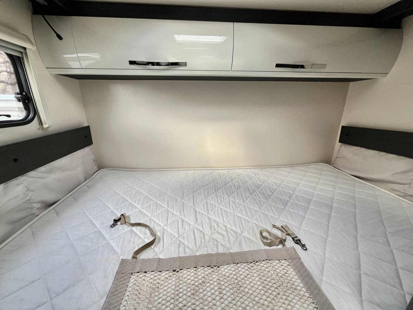 It has the advantage of a factory fit "Drivers Pack", (cab A/C, cruise control, electrically operated and heated mirrors and removable carpets) it also had the addition of Alloy wheels, reversing sensors and a Fiamma F45s wind out canopy, additional USB points were fitted in the bedroom area and also there is a socket and light in the garage area
