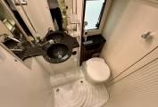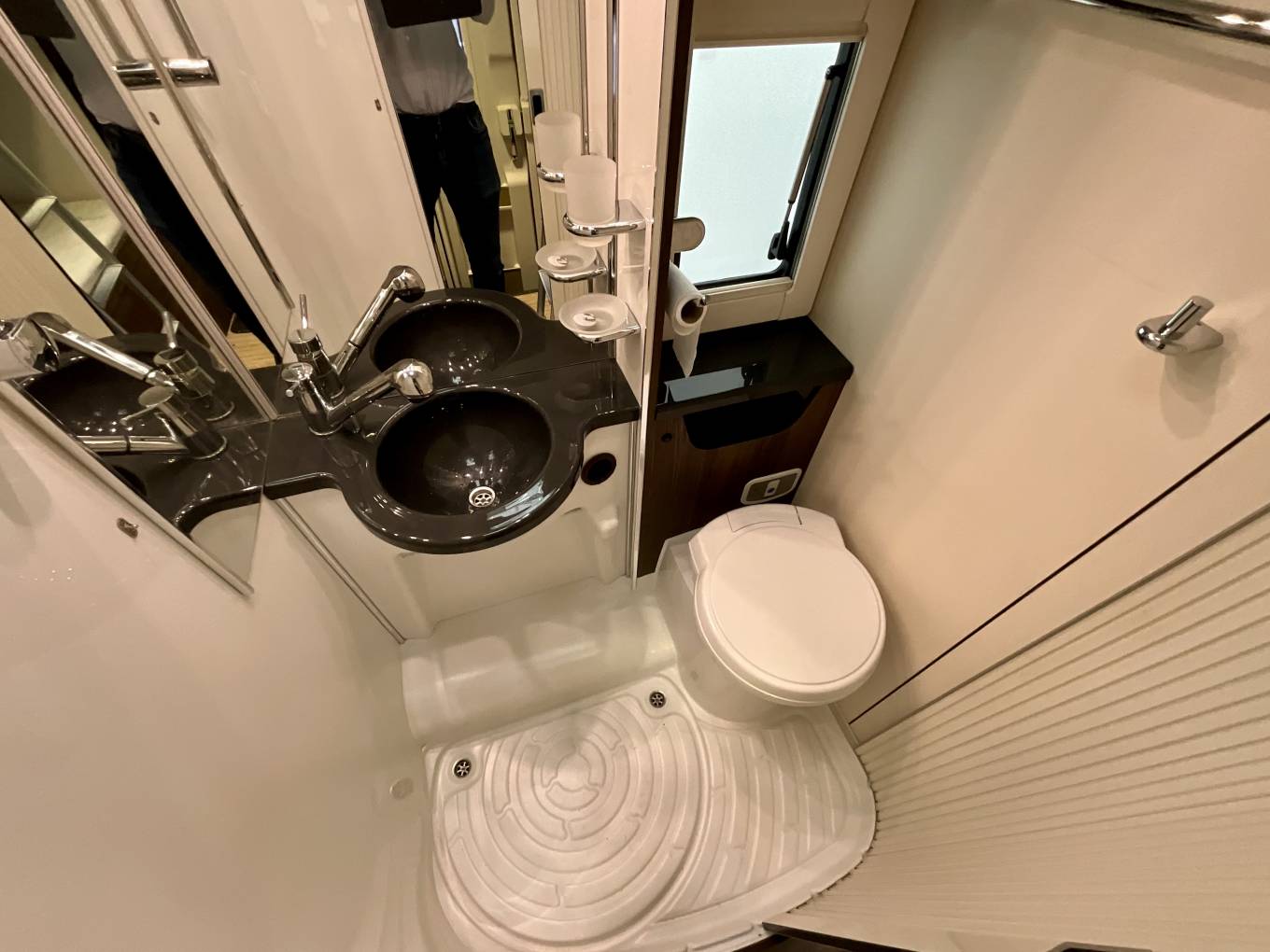 The washroom comes with a sizeable shower space, washbasin and Thetford toilet with cassette.