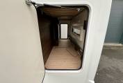 The front lounge is great for meal times and socialising, with twin dinettes sat either side of the lounge area, which can comfortably seat six, and the large windows and skylights allow for great natural light coupled with the LED lighting throughout the van. A spacious wardrobe also features, ideal for plenty of clothes storage.