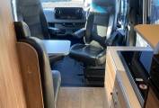 dinette with side mounted lift up table opposite the swivel cab seats, so four