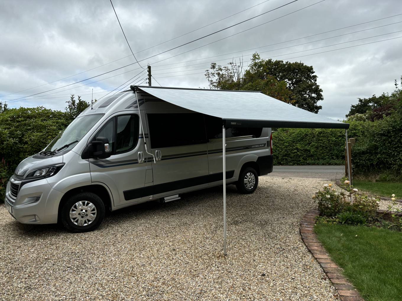 Some of the other benefits of this Auto-sleepers Symbol Plus include: Wind out Thule Omnistor canopy, Integrated cab blinds, flyscreens and blinds, underfloor gas tank, electric hook up lead, water fill up hose, coffee filter machine, solar panel, external BBQ point and USB points.