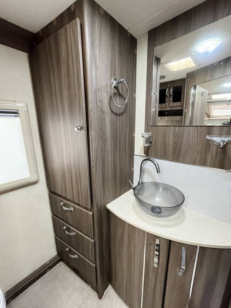 It is a 2 berth 2 belt 6.3M motorhome consisting of a front lounge, central kitchen and large rear toilet, washroom and seperate shower room.