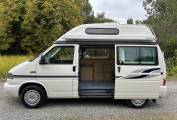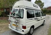 This campervan can be used in winter as it has the excellent diesel heating system which will keep you as warm as toast on even the coldest of winter days. It has the added benefit unlike most campers that it has a portable toilet onboard. Externally there is a wind out awning, a roof ladder and a bike rack for 2 cycles.
