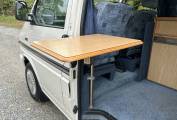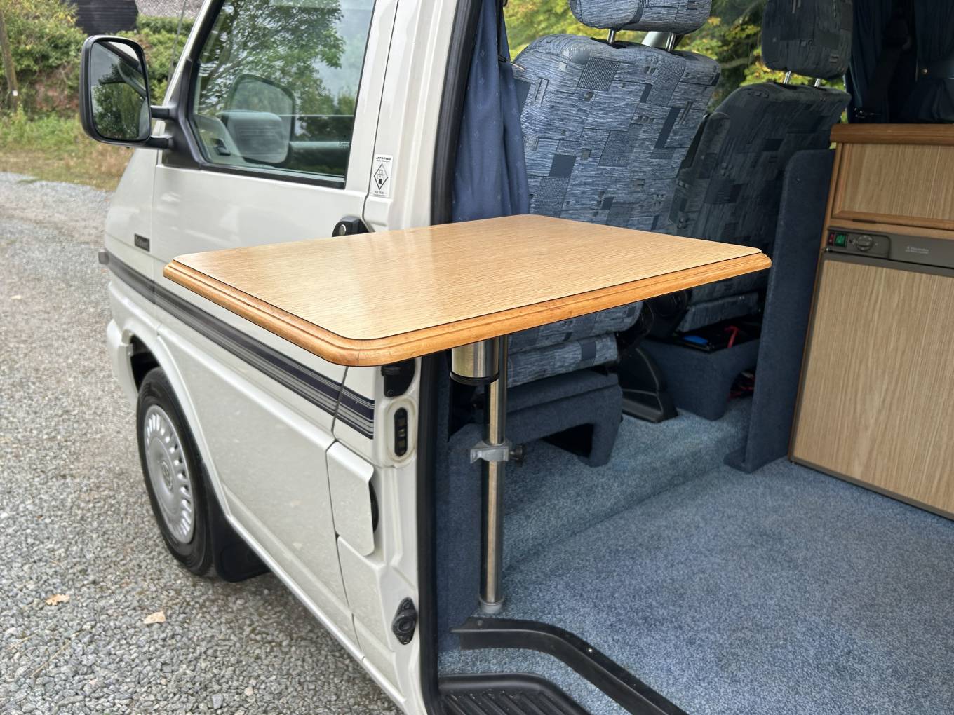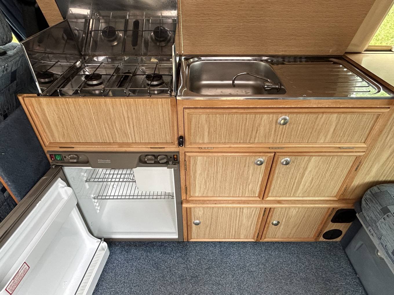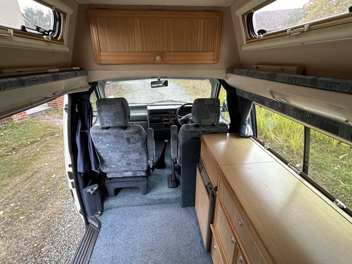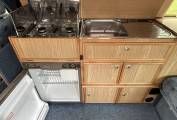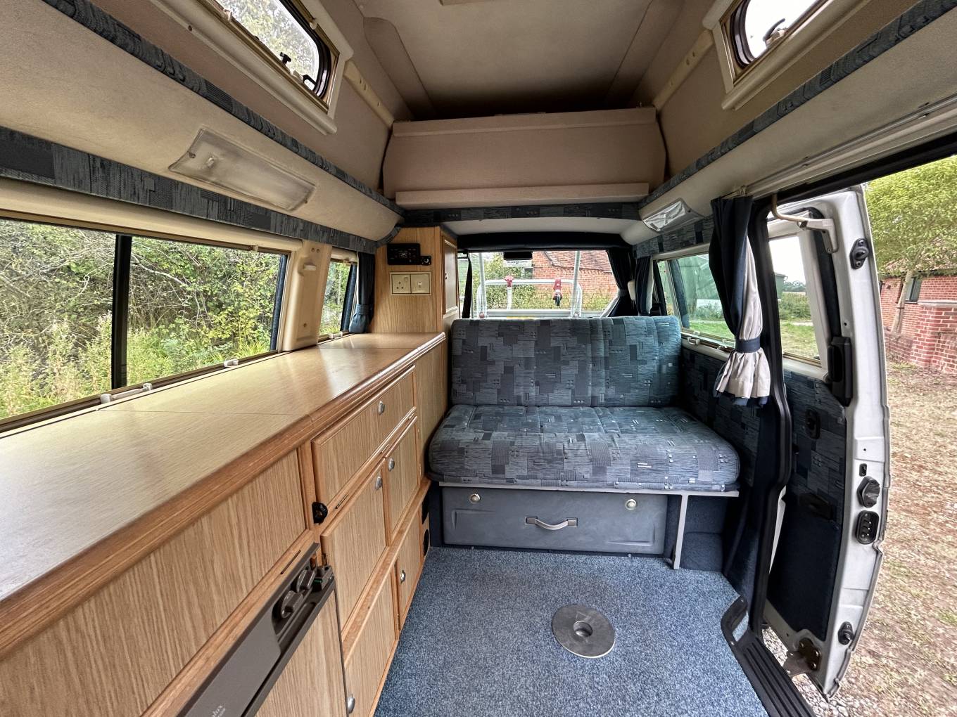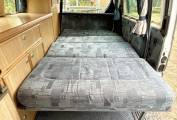 The high top roof gives plenty of headroom so that you don't feel confined for space inside the campervan. The interior is very clean and the upholstery is in great condition.
