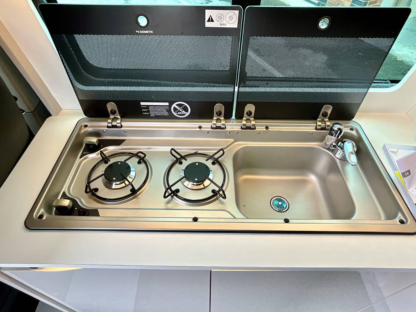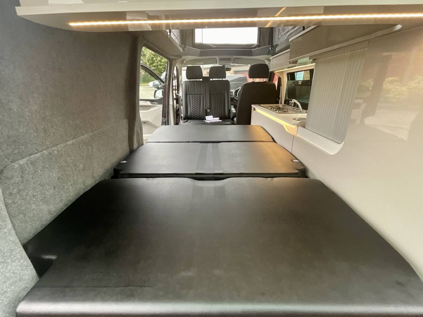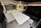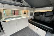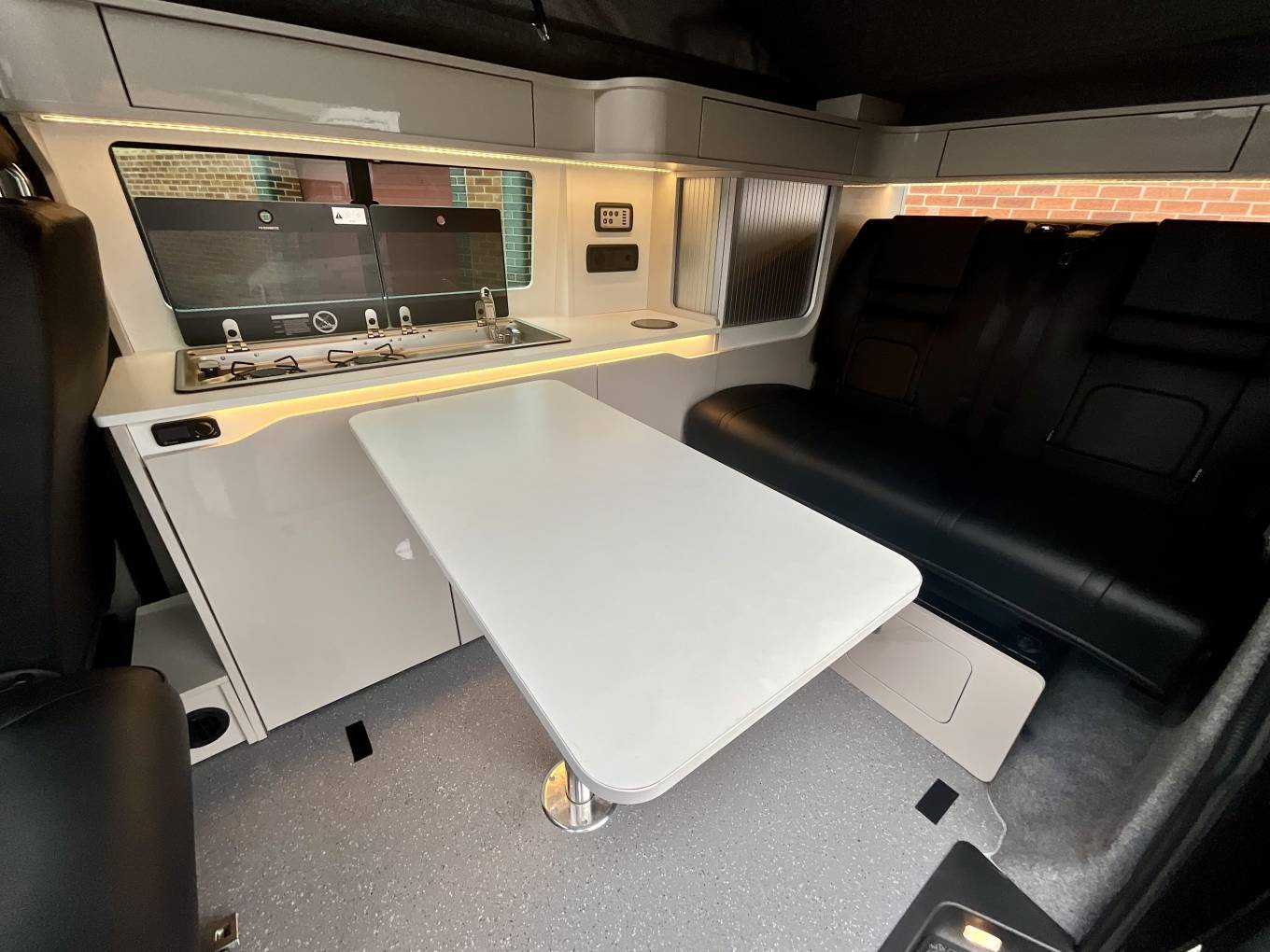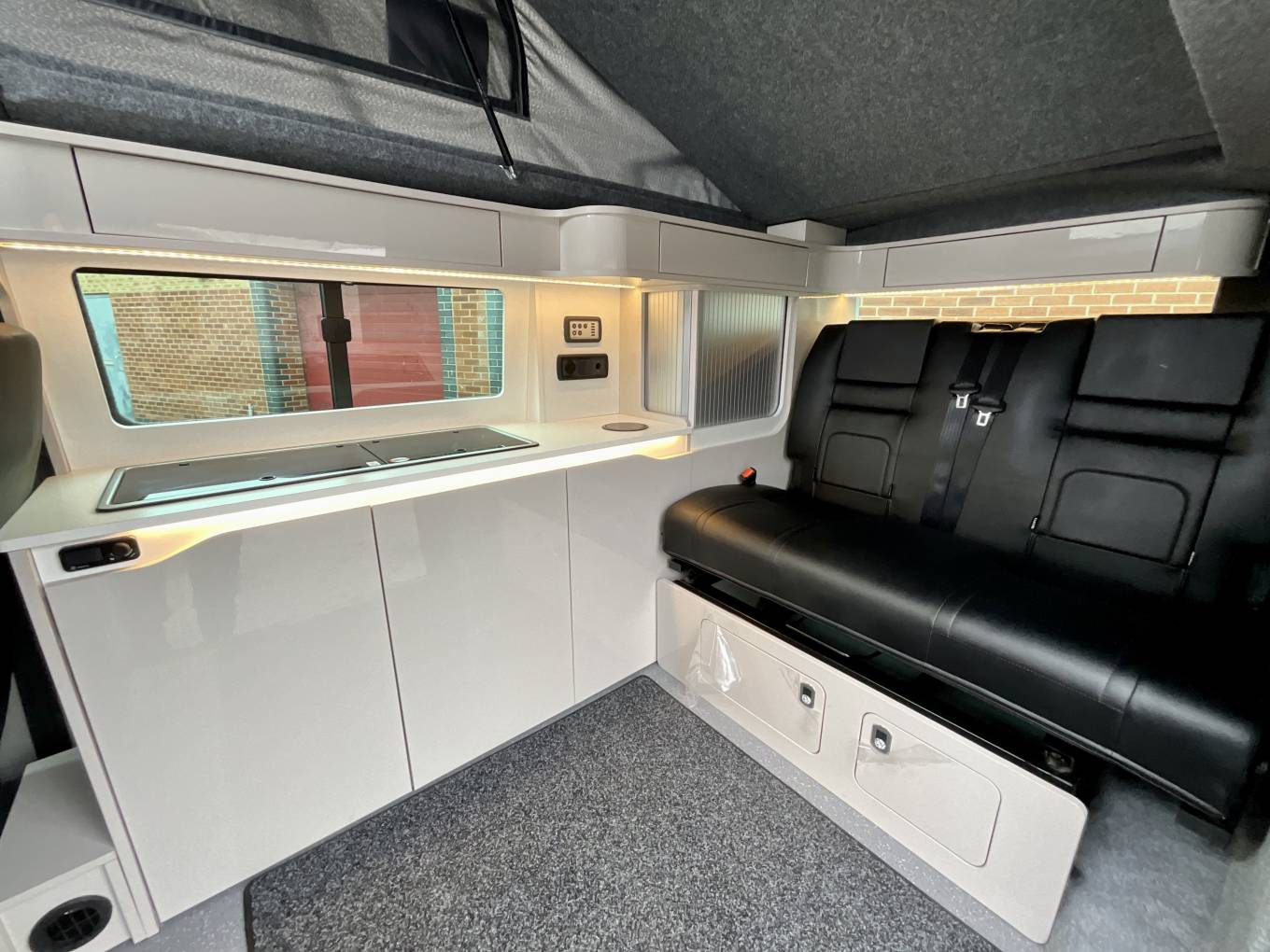 Adventure Wagon and Caravans only create high spec vans, meaning this comes with extras including Drivelodge pop top, RIB bed, solar panel, tow bar, wireless charging and diesel heating. The upholstery is finished in a comfortable black leather throughout, and the MS Craft swivel bench seat can be spun round easily to allow four people to sit comfortably for socialising and meal times.