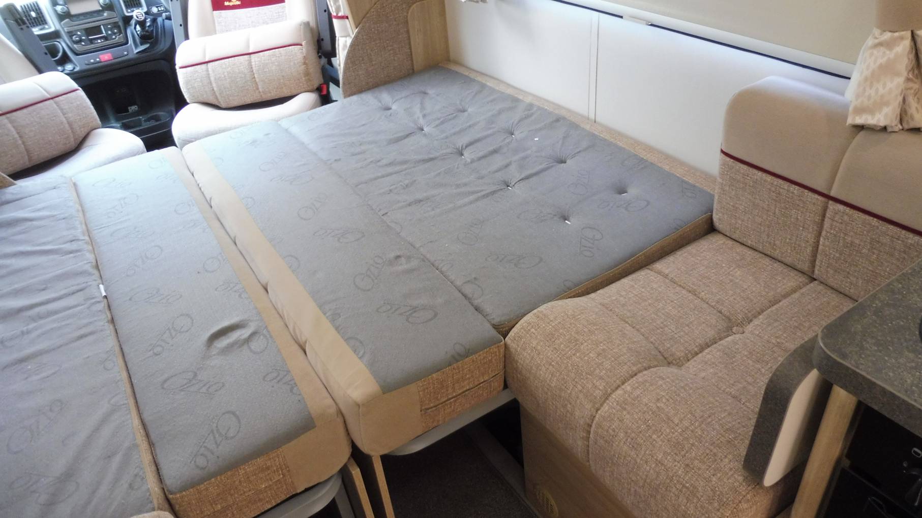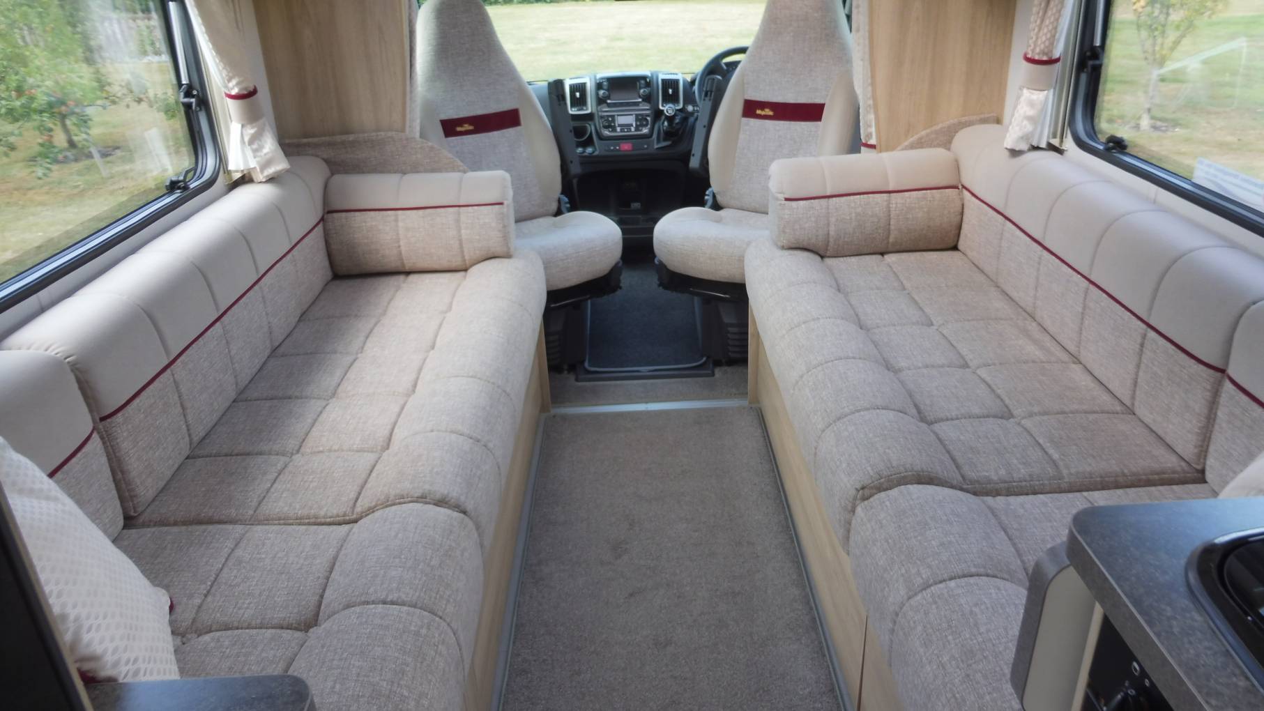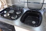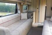 The lounge is the real feature of this motorhome, with large side facing settees and loads of natural light there's oceans of space to entertain or just relax without feeling restricted and enclosed – at night it effortlessly transforms into 2 spacious single beds or a double with room for a single seat if one of you is a late-to-bed or early-riser.