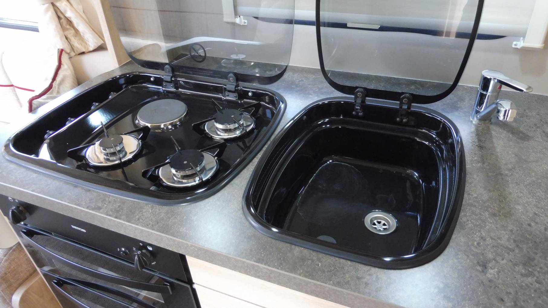 Condition is as good as it gets, the furnishings, carpets, hob, oven, microwave and shower look like new and that continues externally as well.
