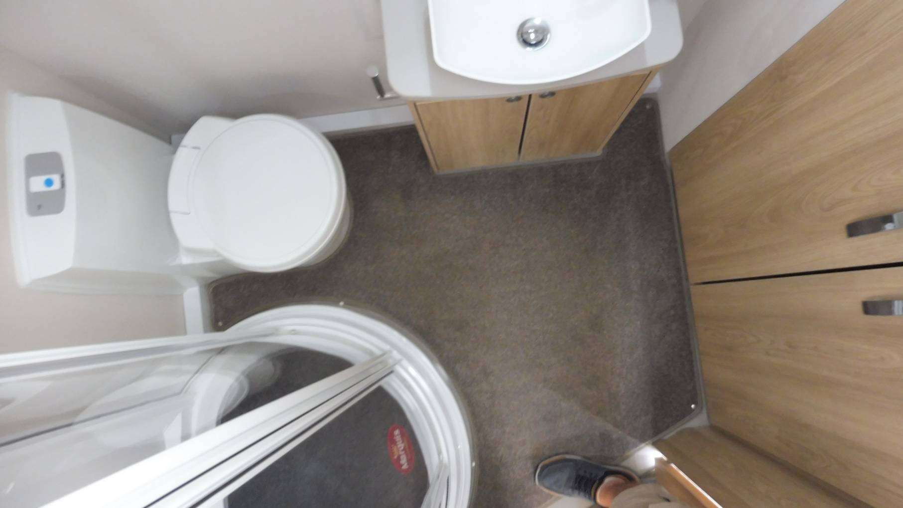 Layout comprises full width rear washroom with generous sized circular shower cubicle and large floor to roof wardrobe which incorporates a 3-drawer cabinet.