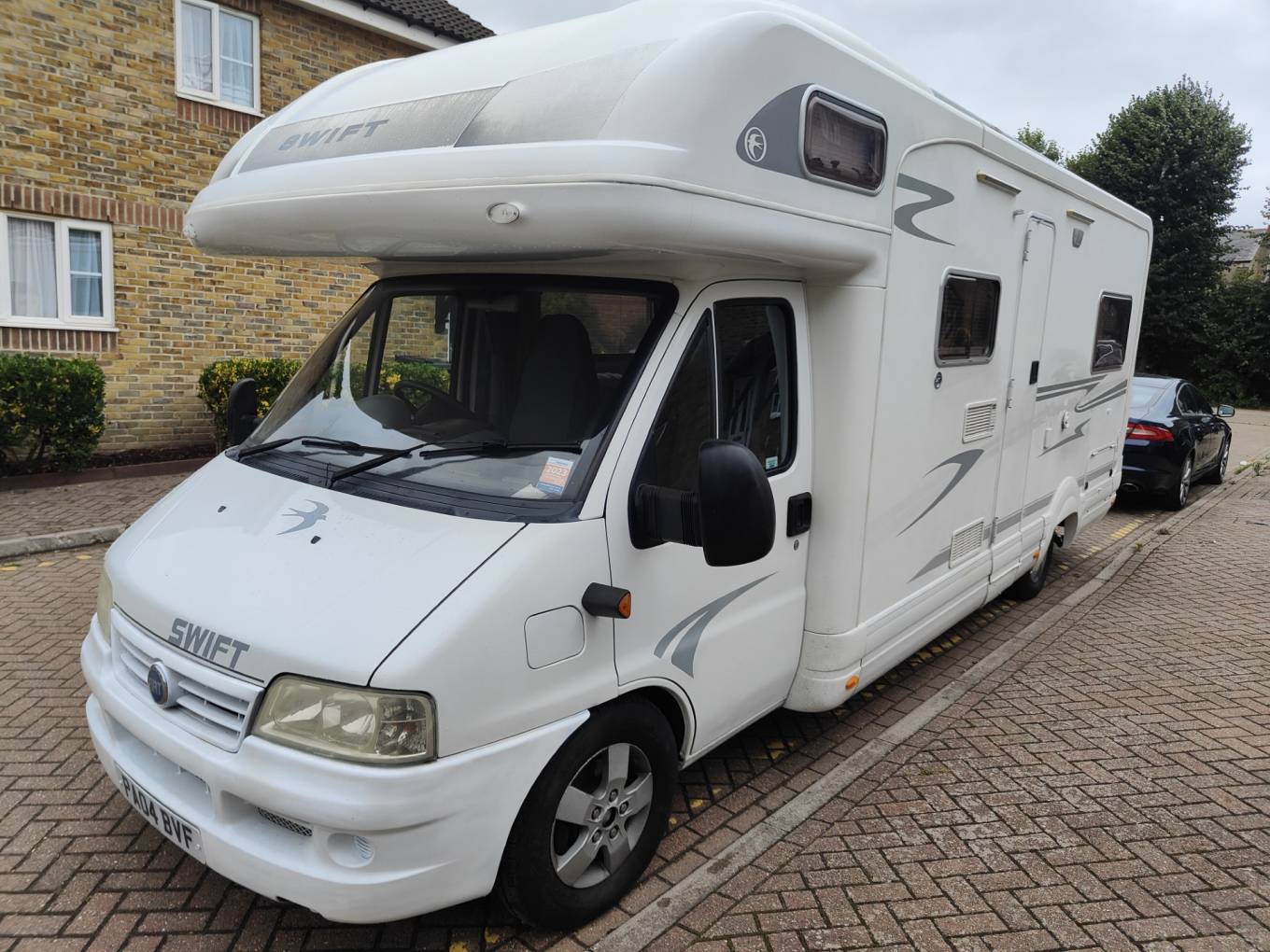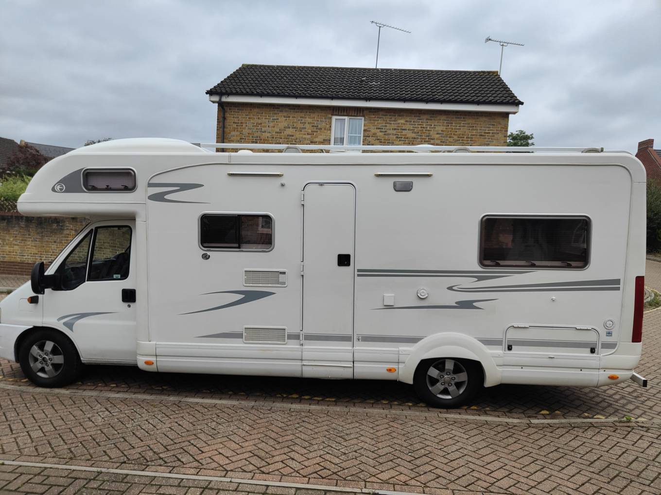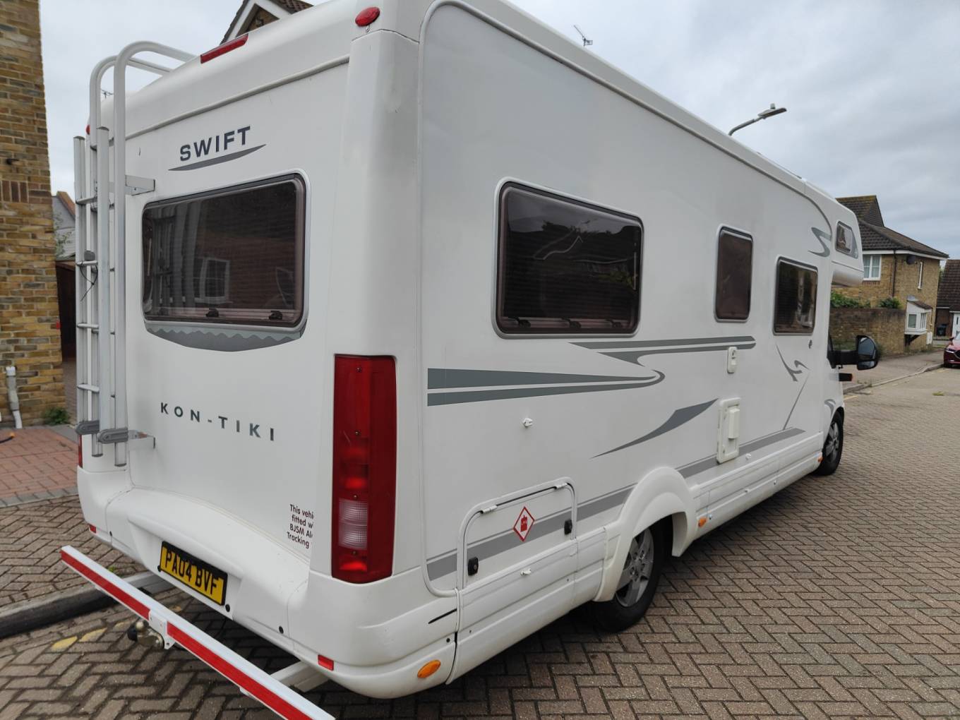 This is a nice example of Swifts flagship Kontiki 645. This 6 berth, 4 seatbelt model features the spacious U shaped lounge to the rear, centre dinette area and a large double above the cab. This 7.5 metre motorhome is plated at 3850 so a C1 licence will be required. Based on the excellent Fiat Ducato cab, this 2.8jtd variant has the 5 speed manual gearbox and produces 130bhp. Great standard spec with the addition of a towbar, roofrack and ladder, alloys, silver screens and a solar panel. 65k miles from new and MOT until may 25. Based in Kent and more pictures available.