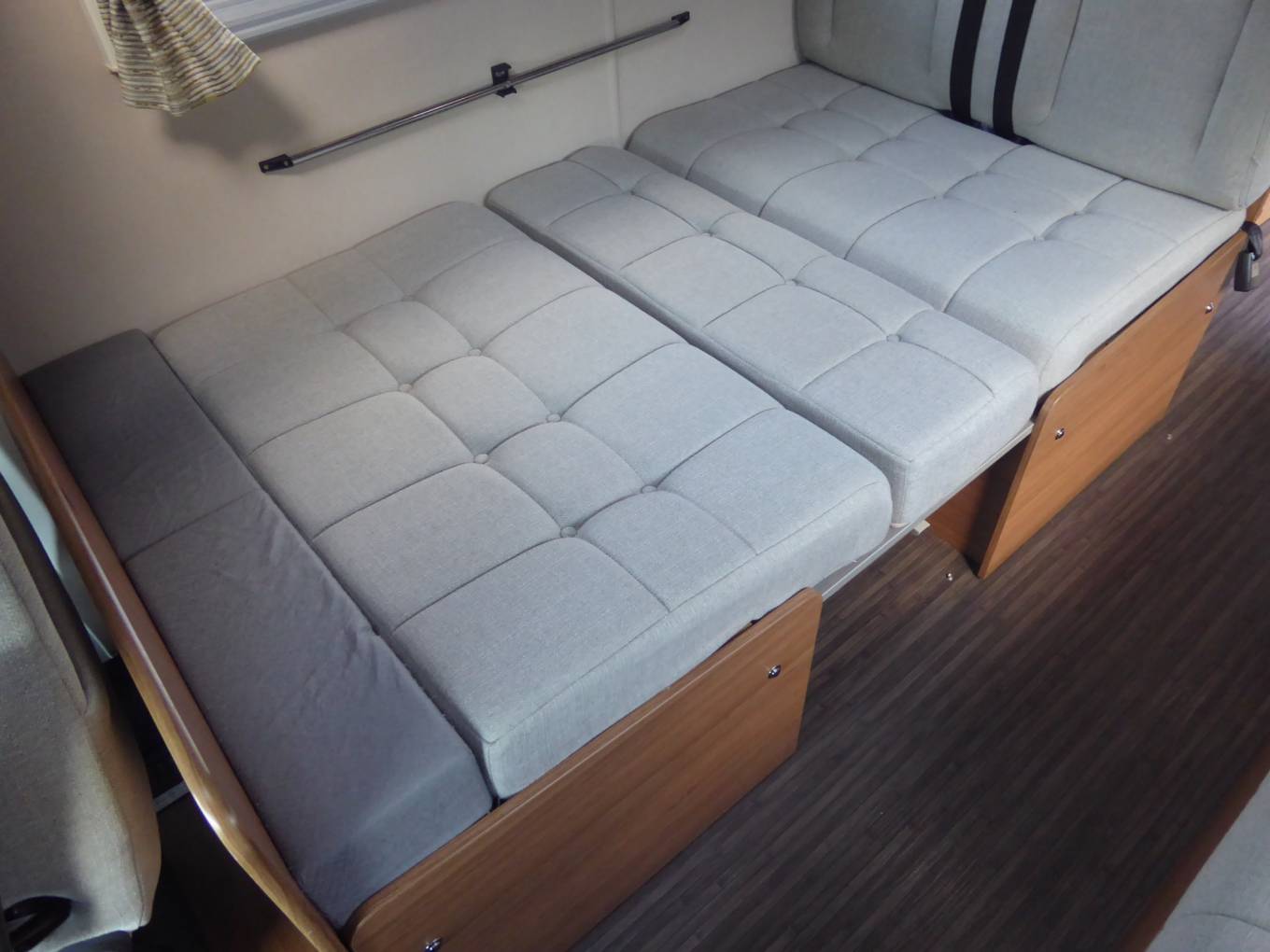 The forward dining/leisure area is comprised of an offside full dinette (with two forward facing seat belts), that converts to a double berth, and a nearside side bench sofa that can also be used as a single bed. This area can be enhanced using the swivel passenger cab seat.