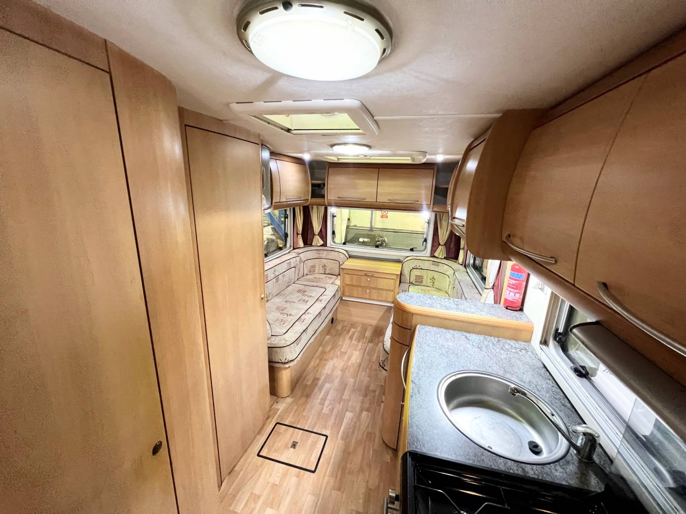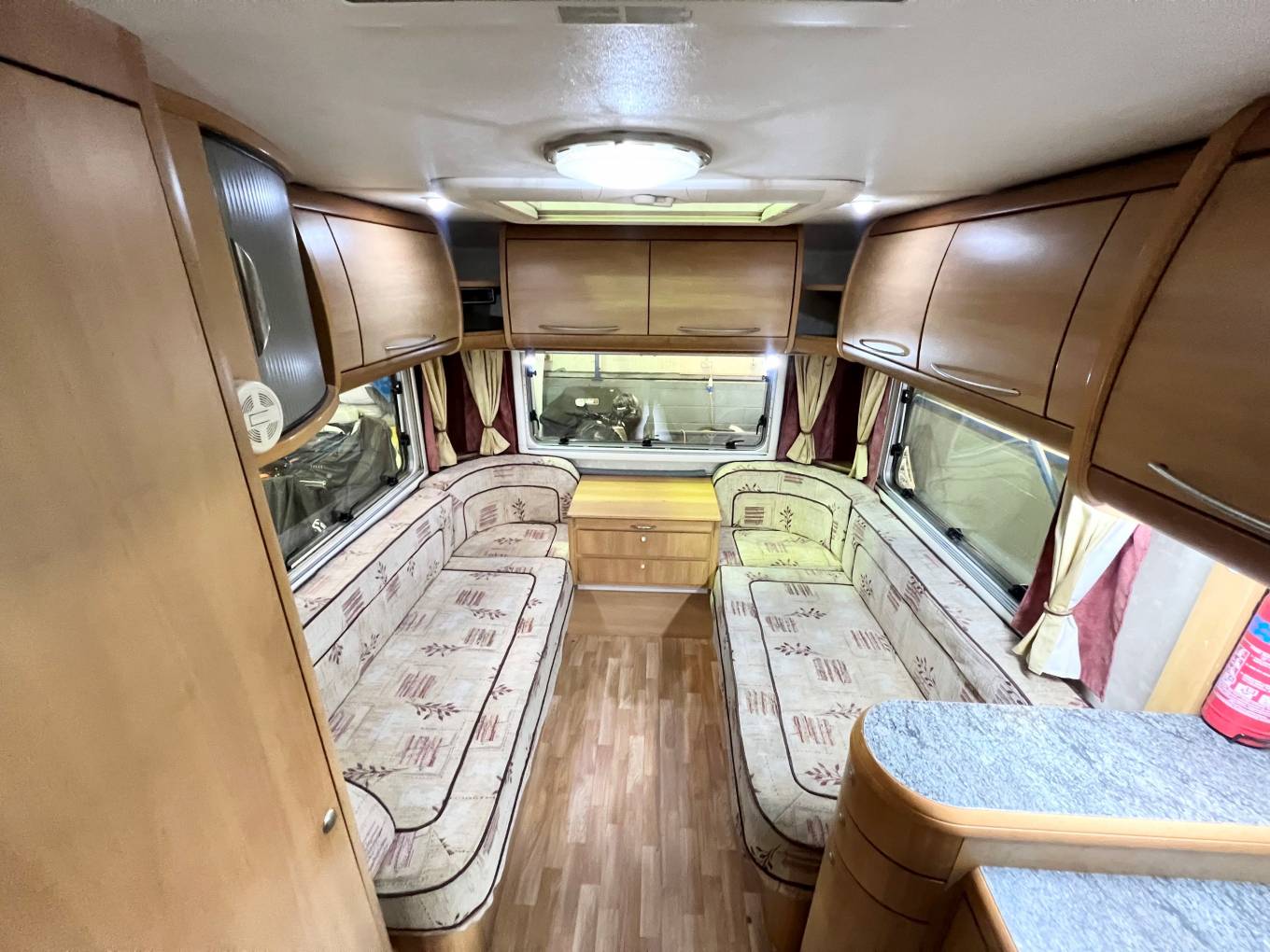 This fantastic example comes with the rear lounge layout that can be easily converted into a double bed or two singles. Storage is not hard to come by and this vehicle boasts plenty of overhead storage in the lounge, kitchen and over-cab areas, including wardrobes and a mirror.