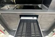 camper has the rear kitchen, with both an electric hob and gas hotplate, sink