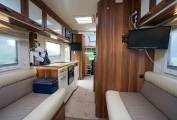 At the rear, the U-shaped lounge provides a comfortable area to relax in the evening, along with a slide out section to make the bed, and another wall mounted TV to provide a 2nd lounge/living.There is a foldaway dining table providing the motorhome with not one but two living and dining areas.