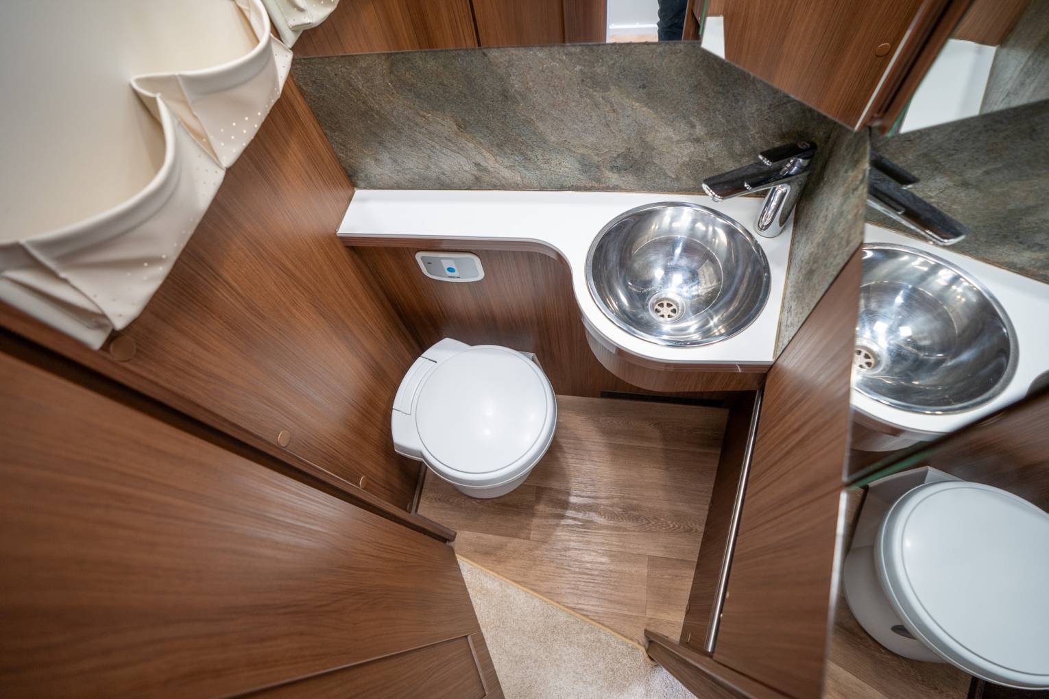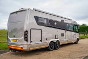 Upon entering the vehicle you are greeted with a spacious and luxurious living area. A large adult-sized double bed drops over the cab, whilst the kitchen area is fully equipped with an Oven, Grill, 3 gas burners, sink with mixer tap, plenty of storage space and a full-sized fridge with a separate freezer. Towards the rear of the vehicle the beautiful elevated island bed is complete with a unique Custom-Made mattress, Dometic Air Con, Heating, stunning bespoke lights and a privacy screen. Either side of the rear bedroom we have a luxurious bathroom and a separate shower room with divider. Throughout the motorhome there is ample storage, with lockable cabinets and drawers to keep your possessions safe, or hide your favourite tipple. To keep you going whilst off-grid this vehicle is fitted with two solar panels and 2 lithium ion batteries. The rear garage is large enough for any type of outdoor gear or even a Motorcycle. To keep everything secure this vehicle comes fitted with Central locking throughout, a Scorpion Tracker and a Sigma Alarm System.