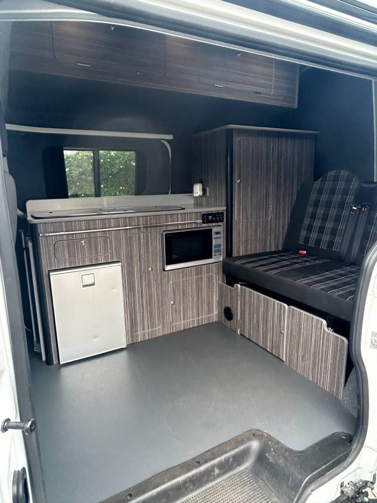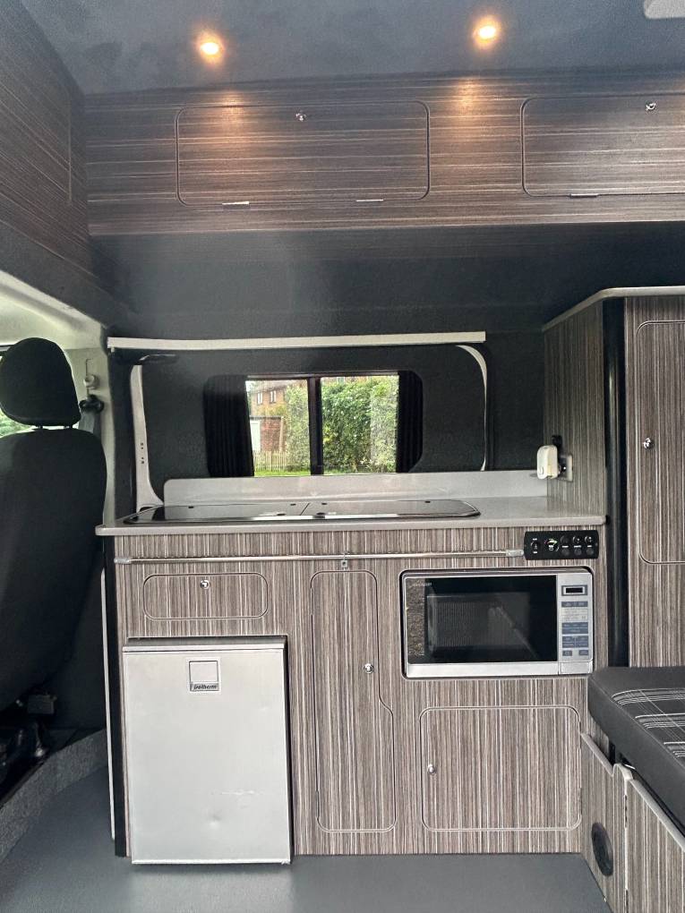 Step inside and be greeted by a space designed for comfort. The captain's seat offers a commanding view of the road ahead, while the electric rock and roll bed transforms the interior into a cosy 2-berth sleeping area. With four belts, safety is assured for everyone onboard. The Webasto Diesel heater keeps you warm on chilly nights, and the skylight lets in natural light, enhancing the spacious feel of the cabin.