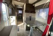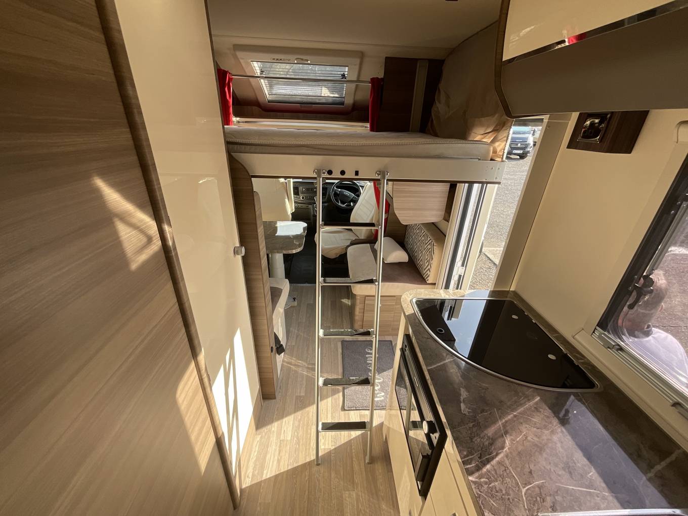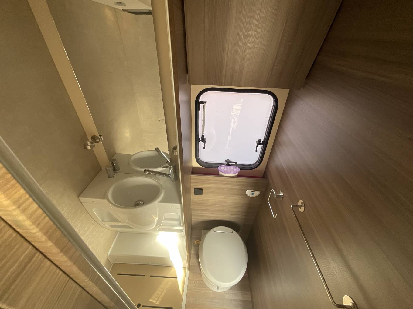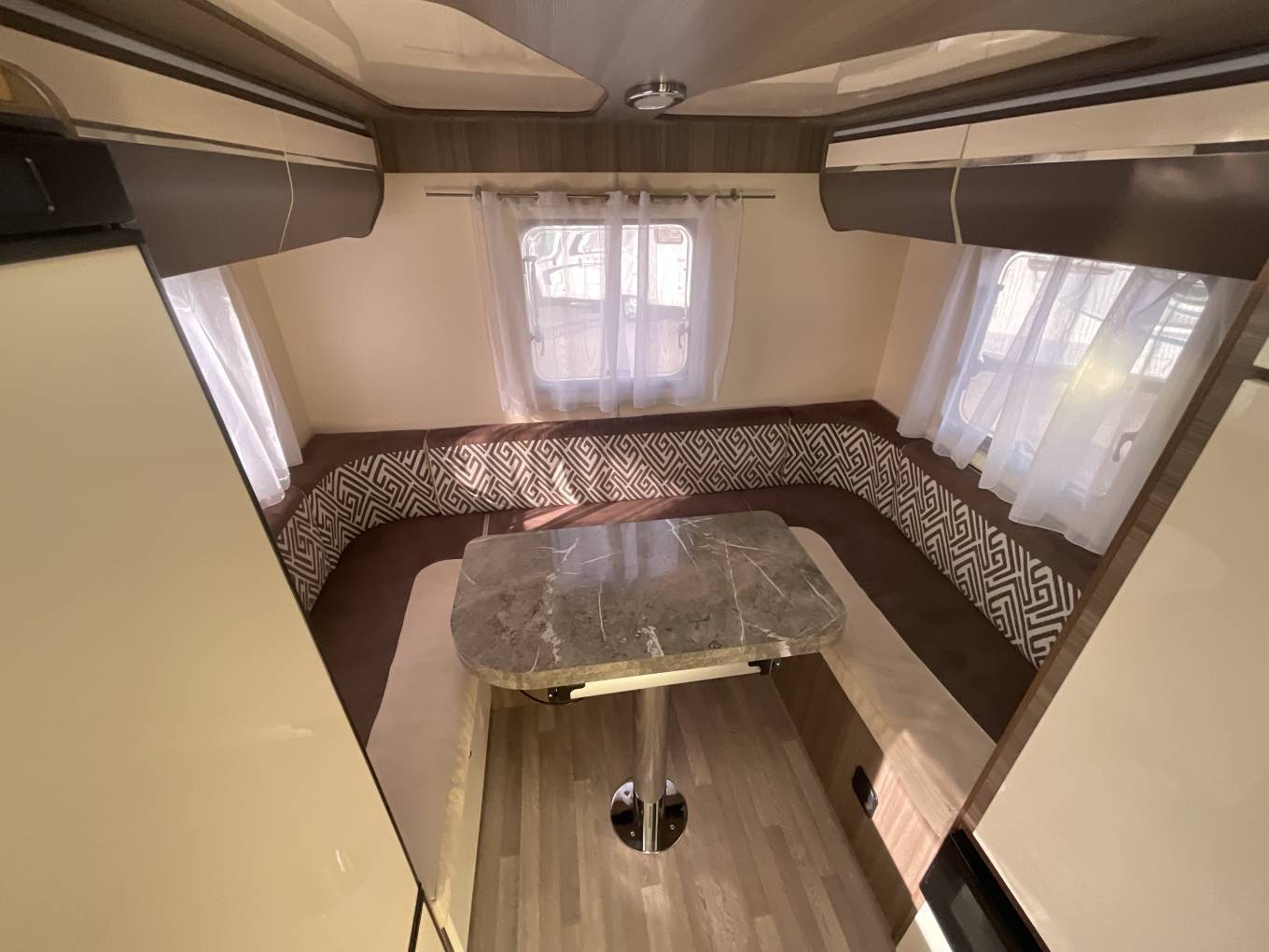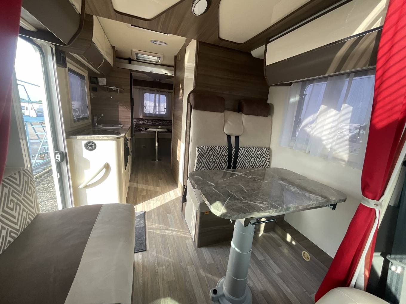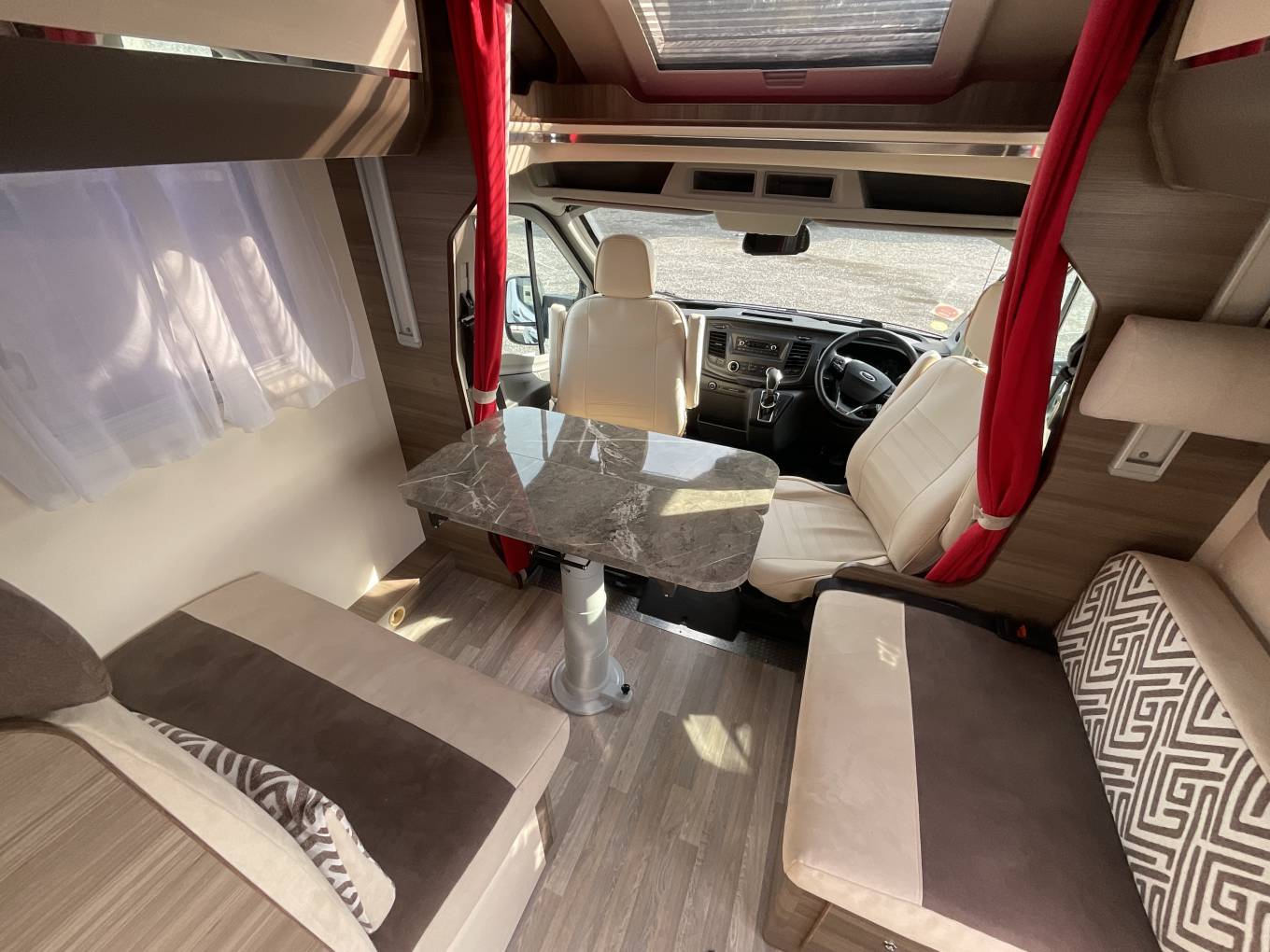 Externally, it benefits from all the features you will need – rear view camera, large Thule wind out canopy, solar panel, mobile wi-fi and a good-sized garage to throw the BBQ and chairs in, what more do you need! Internally, this is a very light, open and spacious place to relax in, mainly due to the twin electric drop down double beds that disappear during the day giving far more living space than you would expect on a motorhome of these dimensions. Having a good-sized rear lounge, front dinette with seating for 5 when the cab chairs are moved round, washroom with shower and all the kitchen space and equipment you need for that trip away.