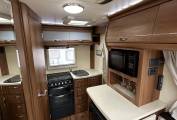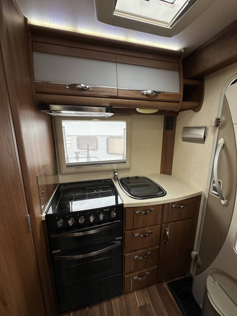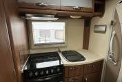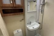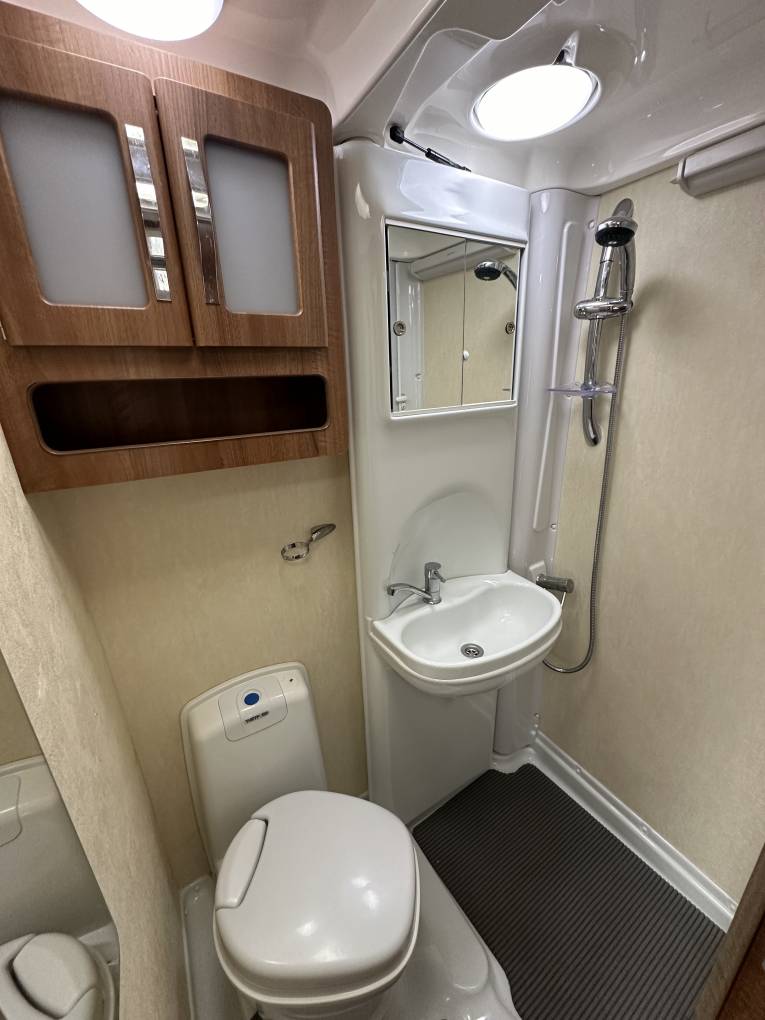 Alongside the kitchen is a large washroom with casette toilet, hand basin and a pull out shower cubicle .