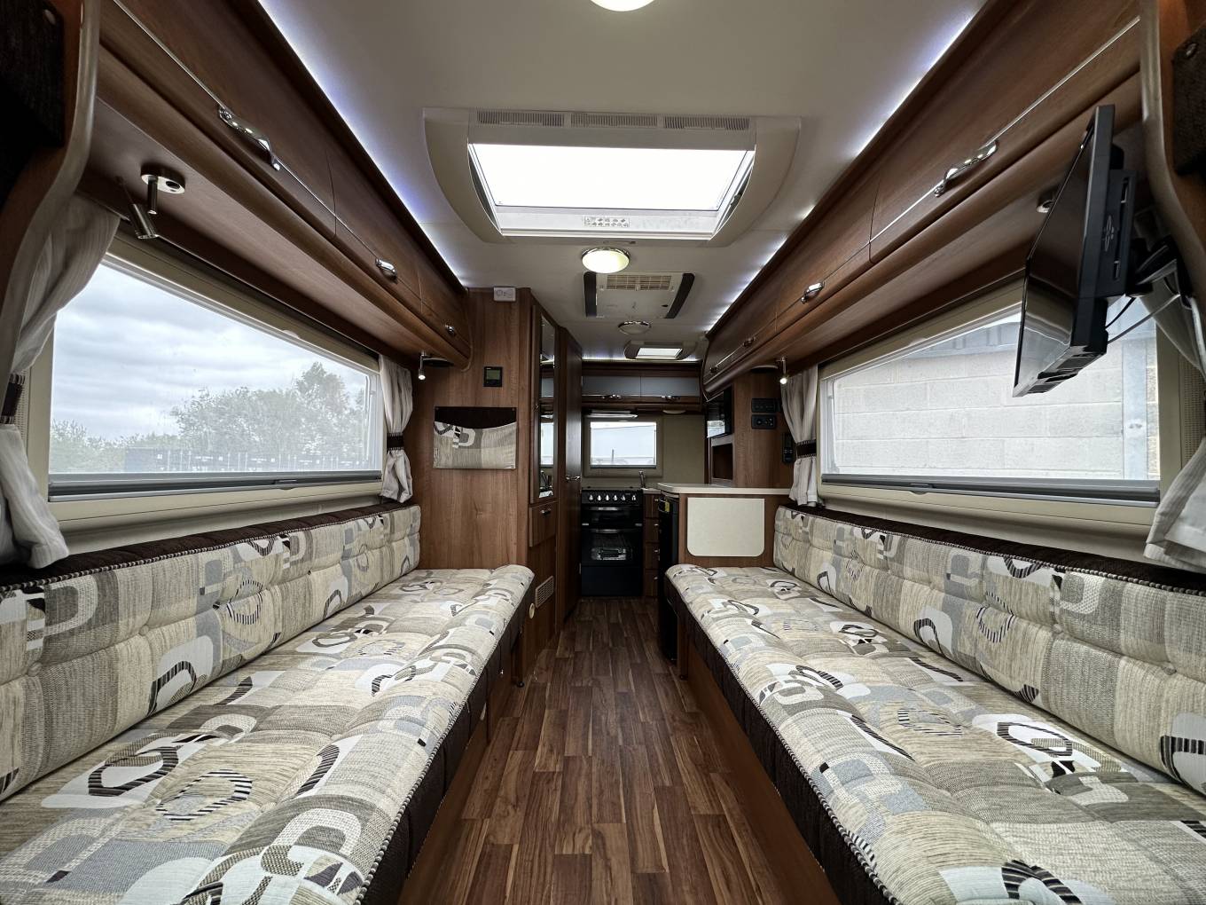 TV, Habitation Air Conditioning, Solar panel, Bike Rack, Wind out awning, 25 litre underslung gas tank, External gas and electric point, Truma heating and hot water, Panoramic skylights. Tank blankets. Full cooker. 3 way fridge, microwave, 2 tables and pull out work surfaces, Rear camera, TV and satelite system, Alloy wheels .
