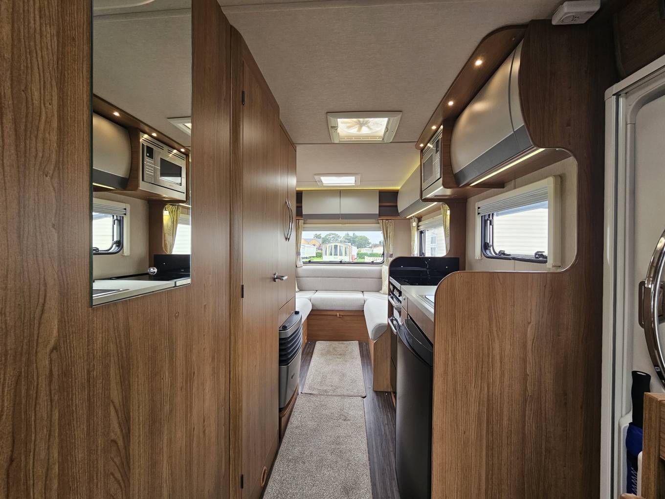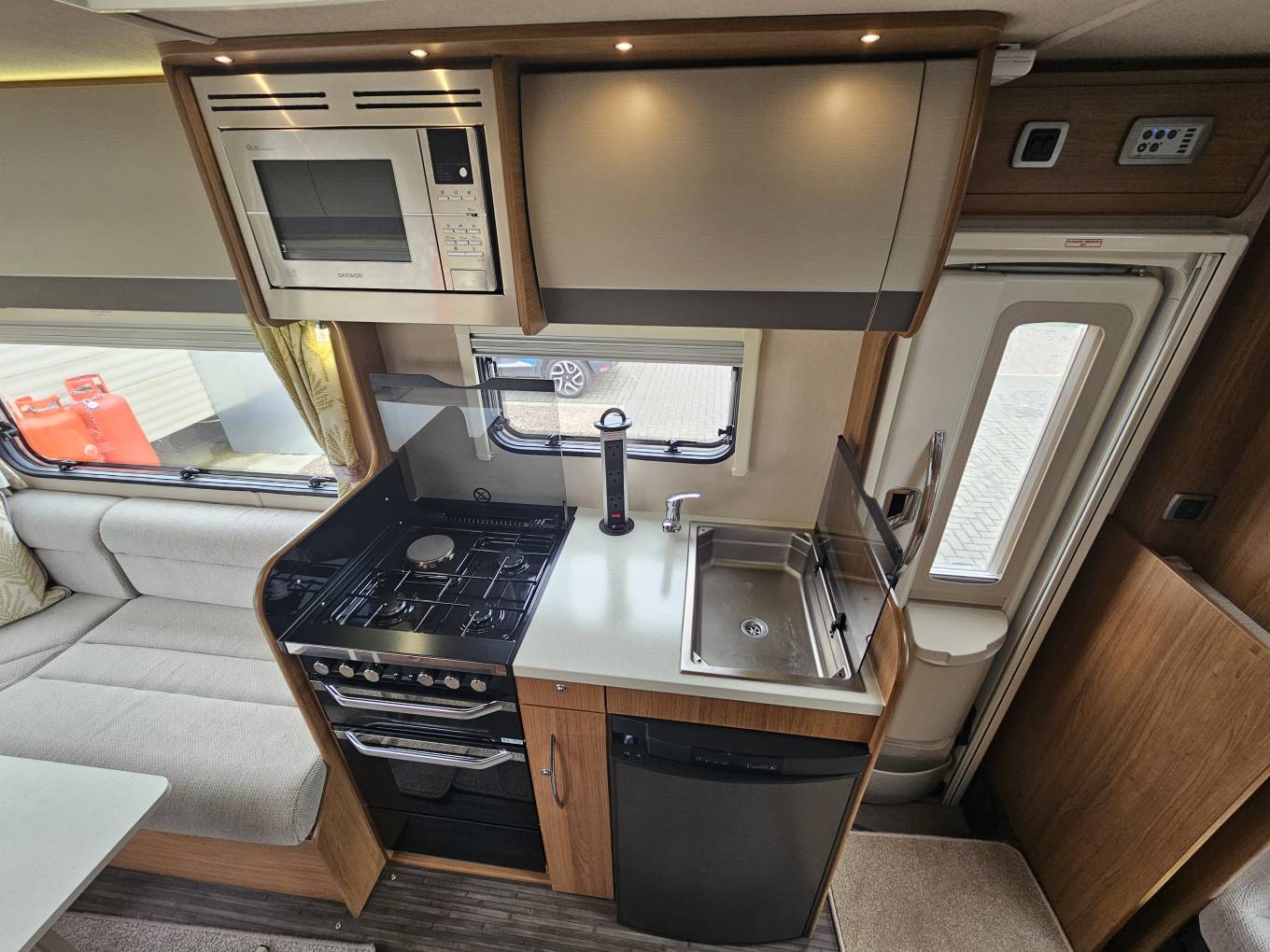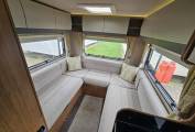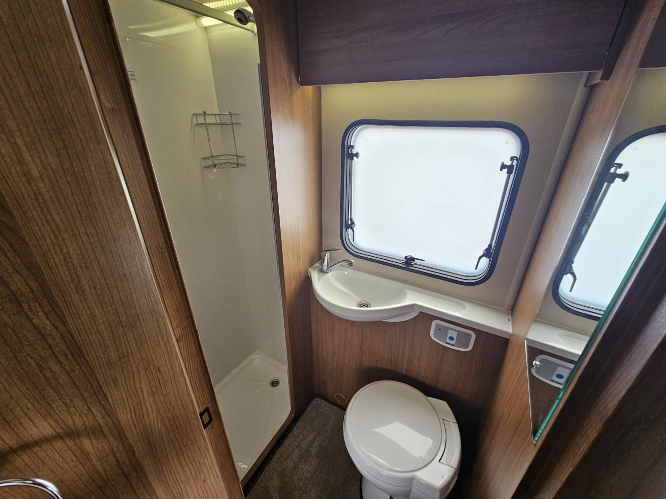 Inside you’ll find a cosy rear lounge, perfect for unwinding after a day on the road, plus a central dinette area and flexible layout for sleeping. The kitchen includes a fridge, microwave, oven, 1 electric hob, and 3 gas hobs, everything you need to whip up a proper meal. The washroom features a toilet and separate shower, giving you all the comforts of home.