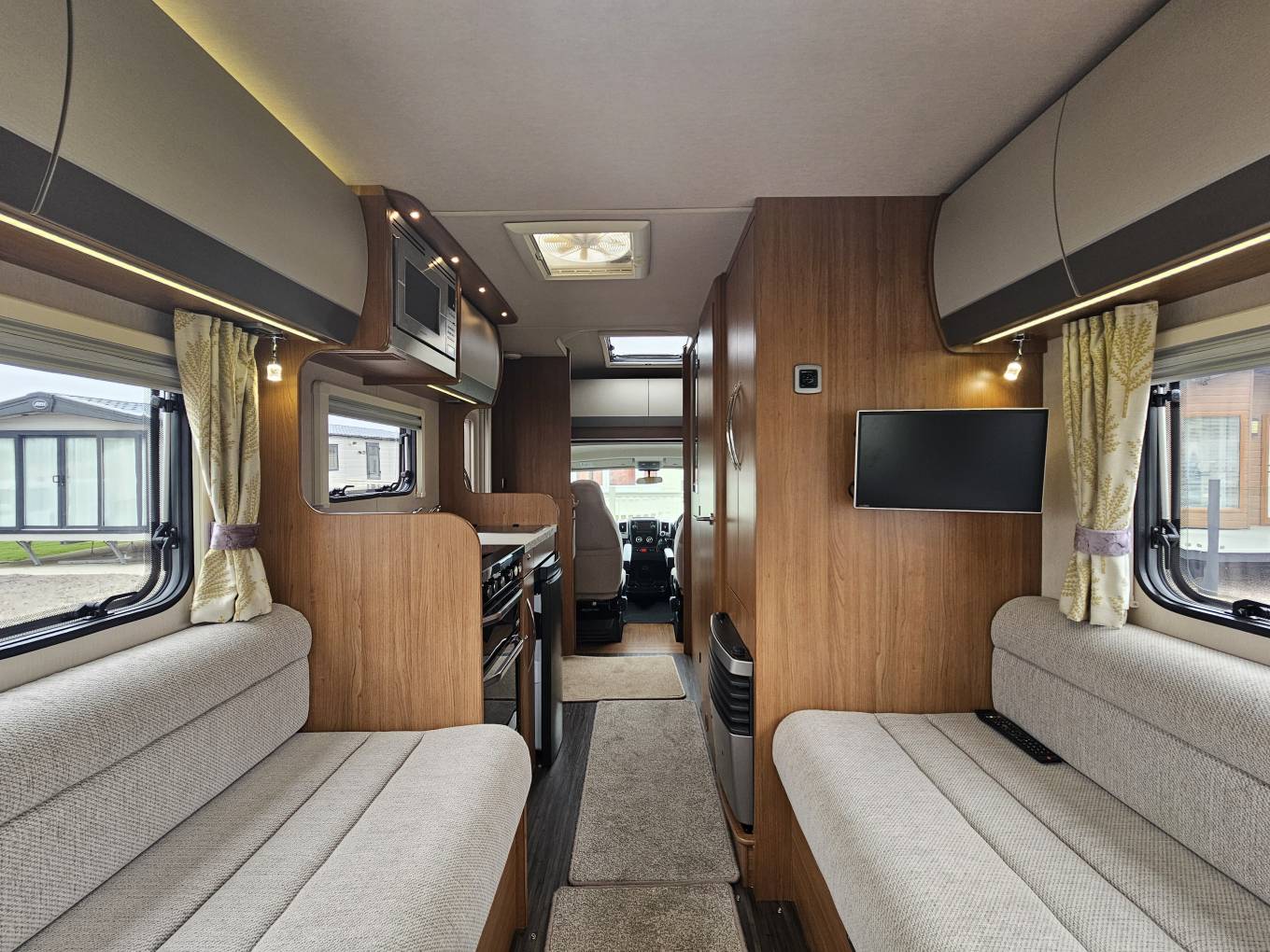This motorhome is loaded with extras to make your journeys even better. Cab air-conditioning keeps you cool, while a reversing camera makes parking a breeze. For added peace of mind, it’s fitted with an alarm and tracker system. Entertainment is sorted too, with a radio and TV aerial booster to keep you connected. A solar panel keeps the dual leisure batteries charged, so you can stay off-grid for longer.