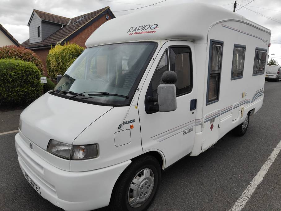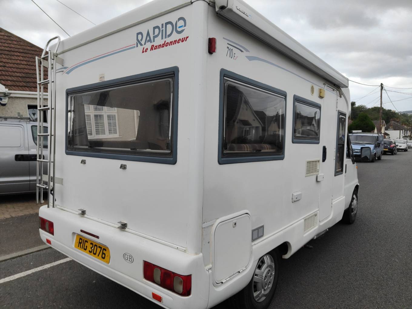 This is a great little example of Rapidos 710F coachbuilt motorhome. This 4 berth, 4 seatbelt model has a spacious rear seating area and occasional bunks to the front with a nicely equipped kitchen and bathroom to the centre. The 2 rotating Captains seats form a 4 seat dinette to the front with occasional table. Extras include a tv aerial, tv, awning, solar panel and silver screens. Based on the excellent Fiat Ducato cab, this 2.8 turbodiesel derivative has the 5 speed manual gearbox and has covered only 91k miles with an MOT until august 25. Based in Kent and more pictures available.