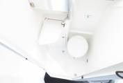 A sensor turns on the main light as soon as you step into the all-white, fully-lined washroom. There’s the familiarity of a Thetford swivel-bowl toilet here, as well as a not-so-common folding soakaway(rather than a water-holding basin).