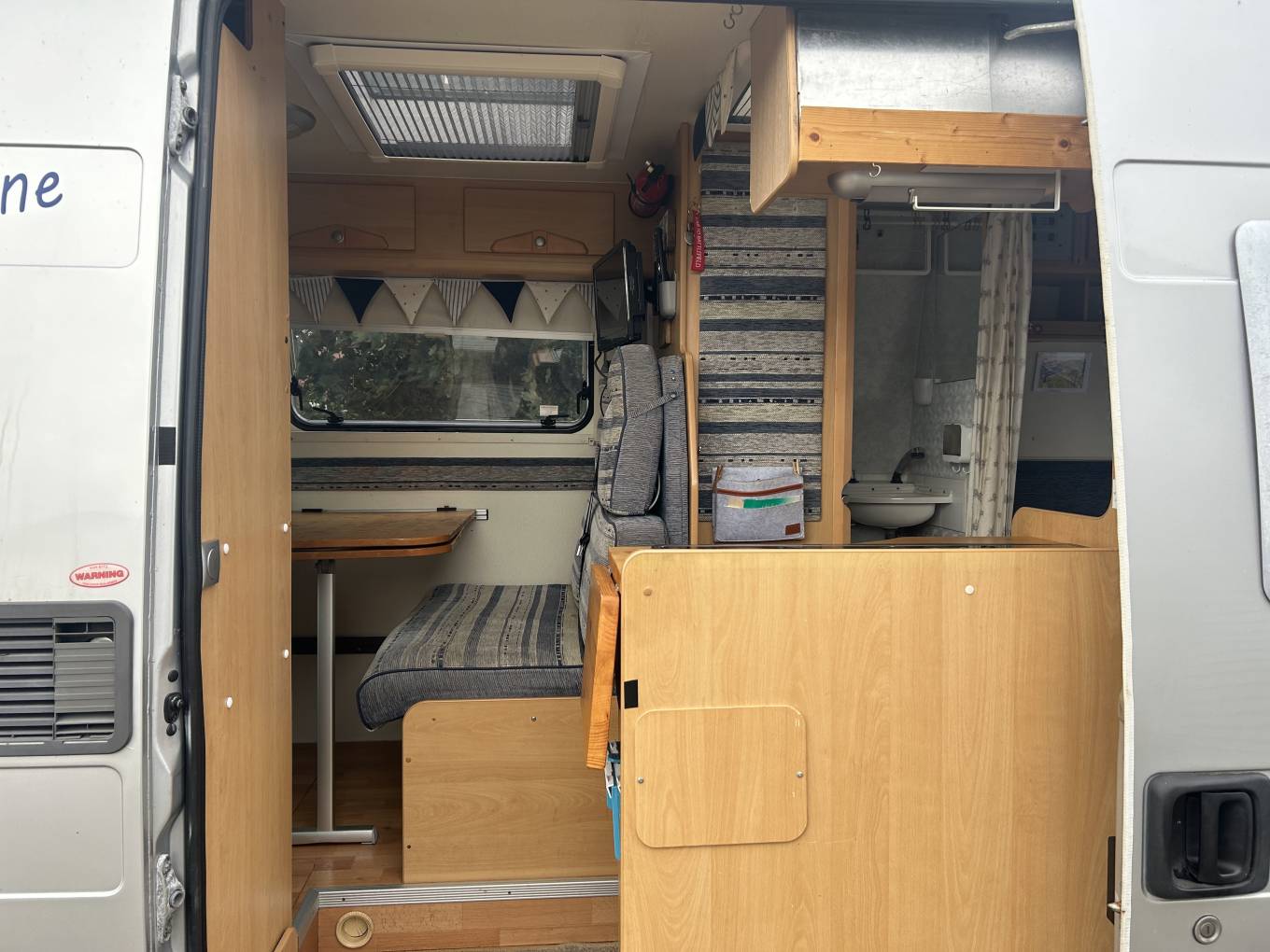 The Adria Twin is built on the Fiat Ducato chassis and has a powerful 2.8L engine that has a good service history. The internal layout of the van is ideal for anyone who enjoys the the outdoor life and provides a perfect base. At the front you have a lounge area where the two front seats swivel road and there is a front facing double seat. The current owner has made a larger more practical extendable table but the original is available as well. There is a central kitchen unit that has been refurbished and has a Dometic sink, hob with two gas burners, 3-way fridge and grill. As mentioned this camper has a rear fixed bed, so perfect for a great nights sleep. This measures 190cm x 140cm (max) - narrowing to 120cm. The Twin has a good washroom with cassette toilet, sink and shower - with separate shower attachment.