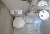 mid-ship we have the washroom with toilet, shower and sink with mixer tap and a