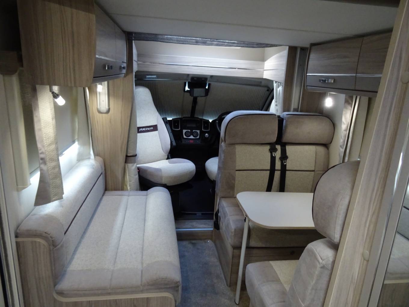 Both ends of the motorhome can be made into 2 large double beds with a further double electric drop down bed above the front dining area to