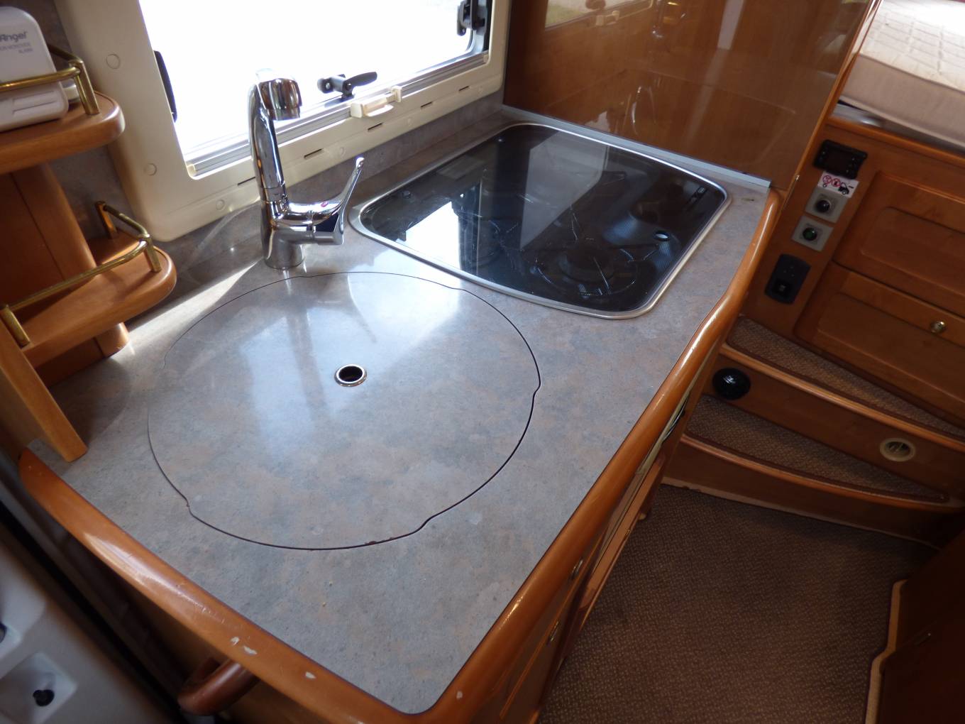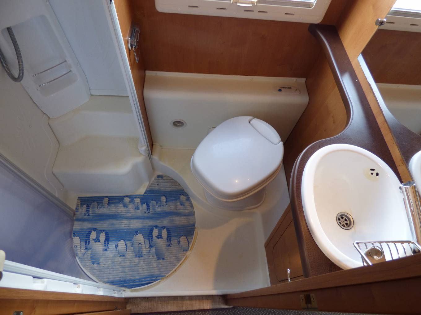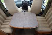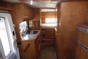 Based on a Fiat 2.8 litre engine, at only 6.2m in length this motorhome has everything required for lengthy stays and has been particularly well arranged for off grid living. The current owner has fitted extra leisure batteries and a solar panel and refillable LPG bottles as well as a night heater. The kitchen is well equipped with 3 ring hob and oven, automatic fridge (gas/mains/leisure) large circular sink, mixer taps and loads of storage. The washroom is particularly well laid out with vanity unit incorporating a large mirror, yet more storage, cassette w.c. and a large shower area with circular modesty screen which separates it from the rest of the washroom.