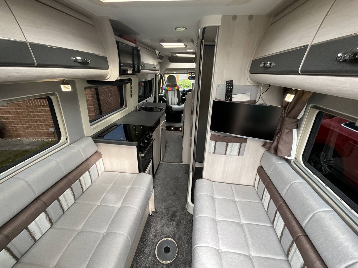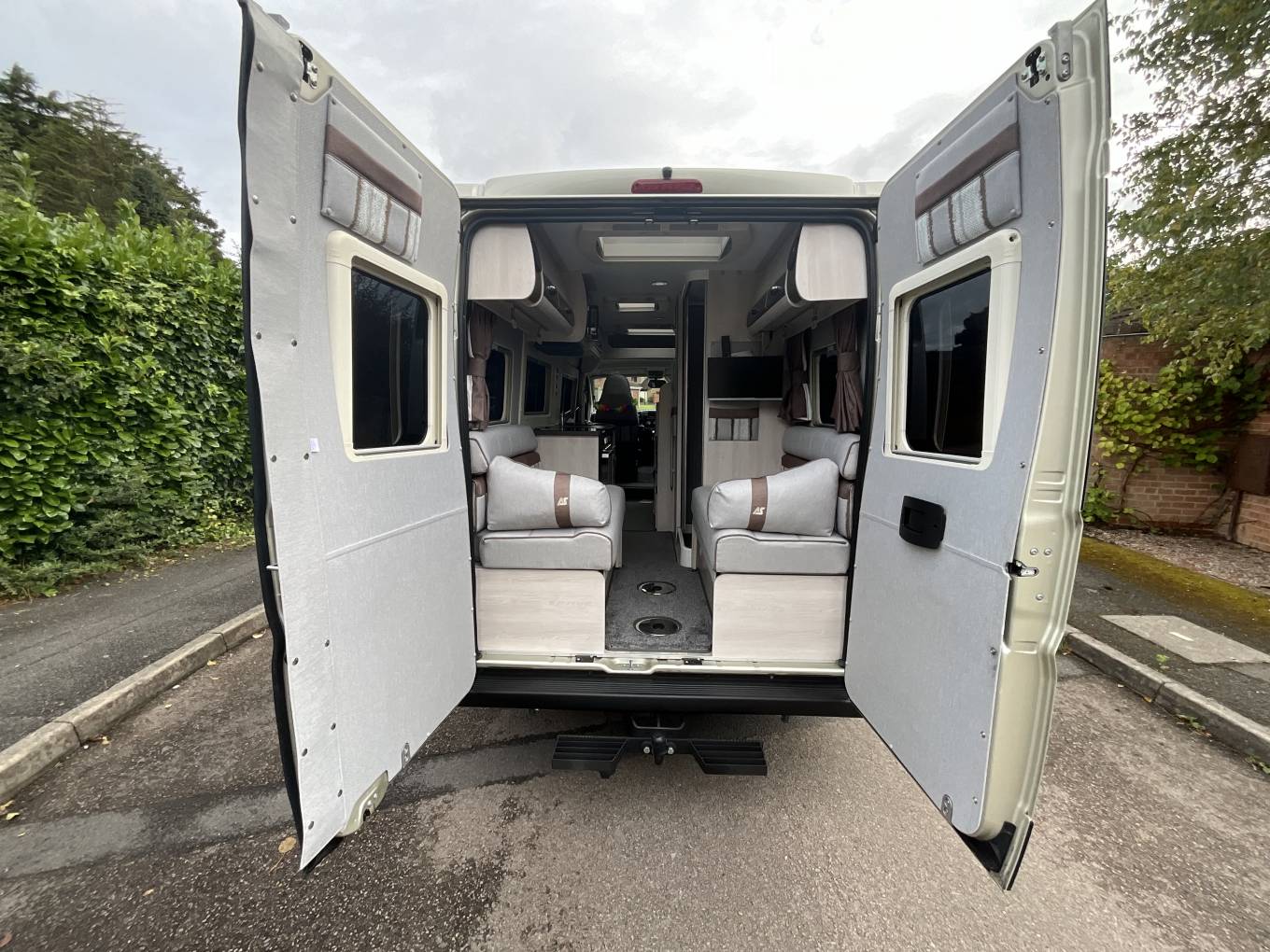 This beautifully crafted motorhome has been cared for to a high standard and comes with genuine low milage and has been factory fitted with the winter pack consisting of heated tank blankets, wheel arch insulation, upgraded Truma combi and concertina cab blinds and the premium pack consisting of alloy wheels, cab air con, cruise control, spare wheel, solar panel and rear air suspension.