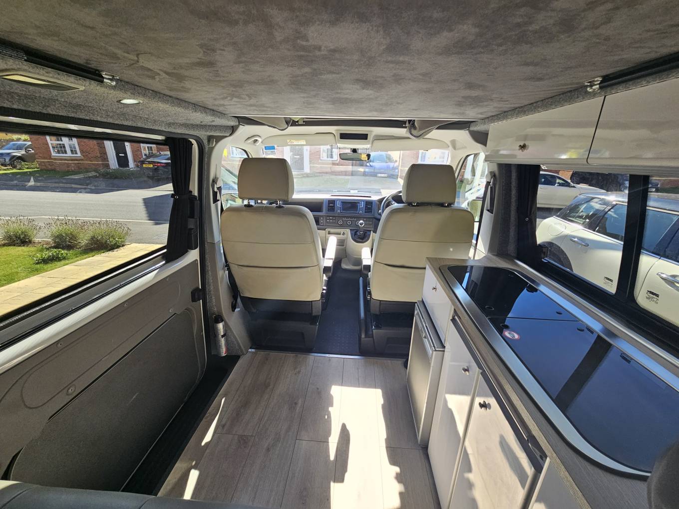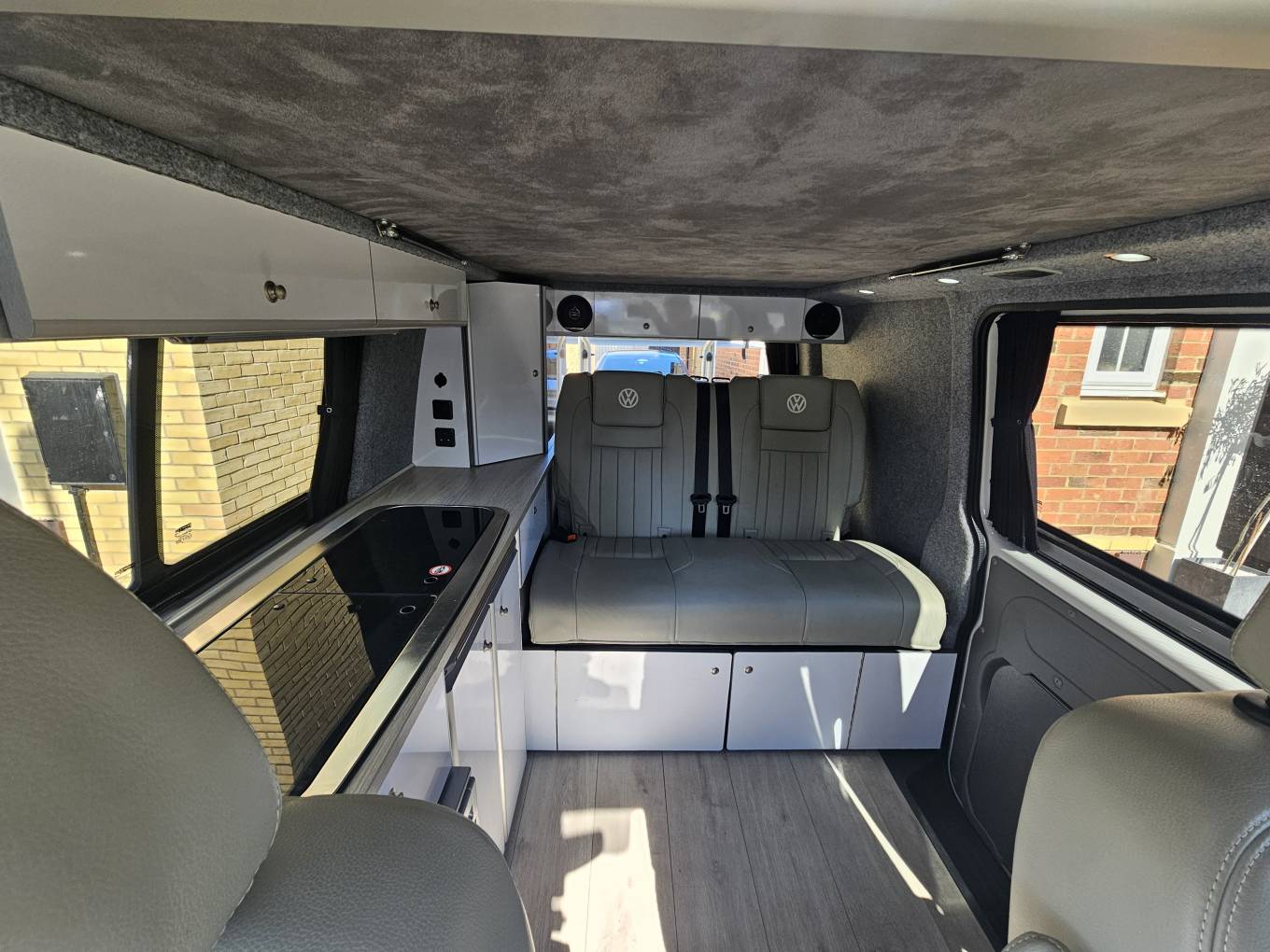 Built on Volkswagen’s renowned T6 chassis, this motorhome is a right-hand drive has a Austop pop-up roof which expands interior space and adds extra sleeping capacity. The vehicle is compact yet spacious, with a length of 4.9 meters, a width of 1.9 meters, and a maximum weight of 3,200kg, making it easy to handle while providing plenty of room inside. It comfortably accommodates four people, making it a fantastic option for family or group adventures.
