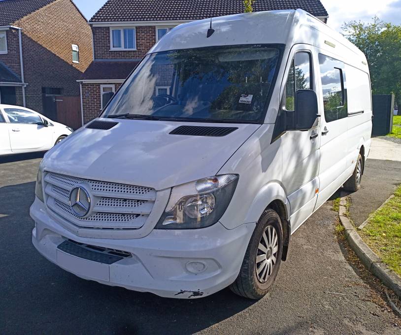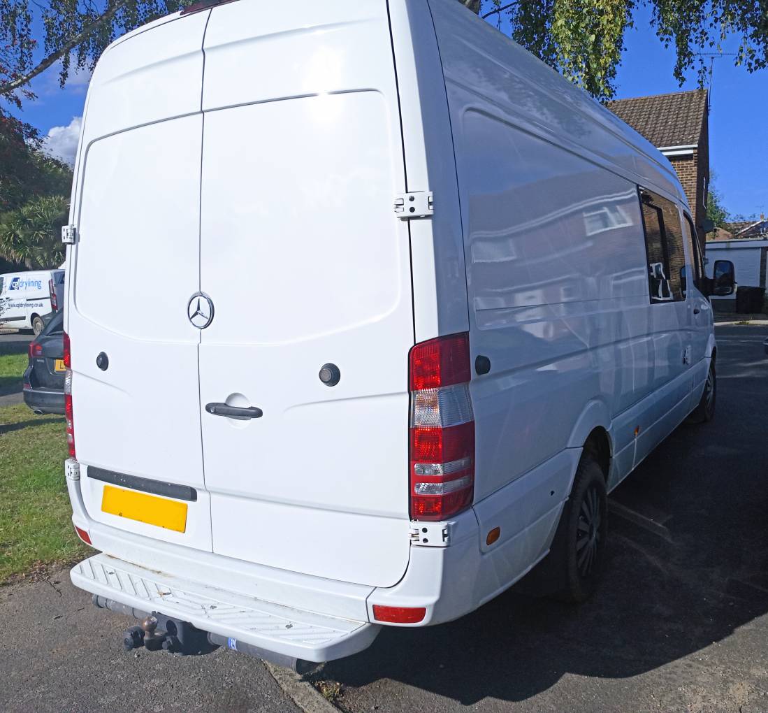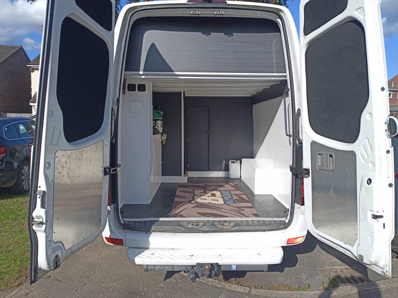Second owner LWB Mercedes Sprinter, rear wheel drive Race Van, large sports garage, located in Ashford, Kent.