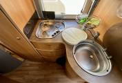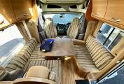 A front lounge with swivel seats can comfortable seat five and has an adjustable table that can be moved into a comfortable position for meal times and socialising. The Allegro is heated by the Truma heating system that can be run from gas.
