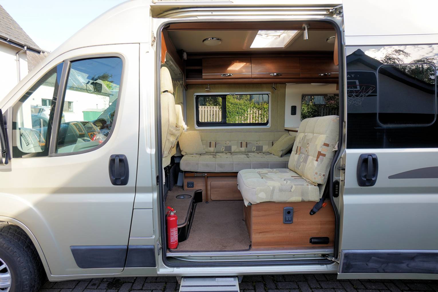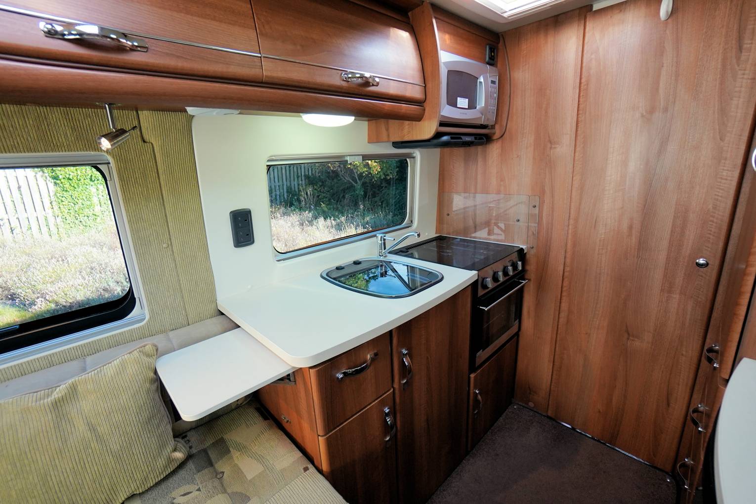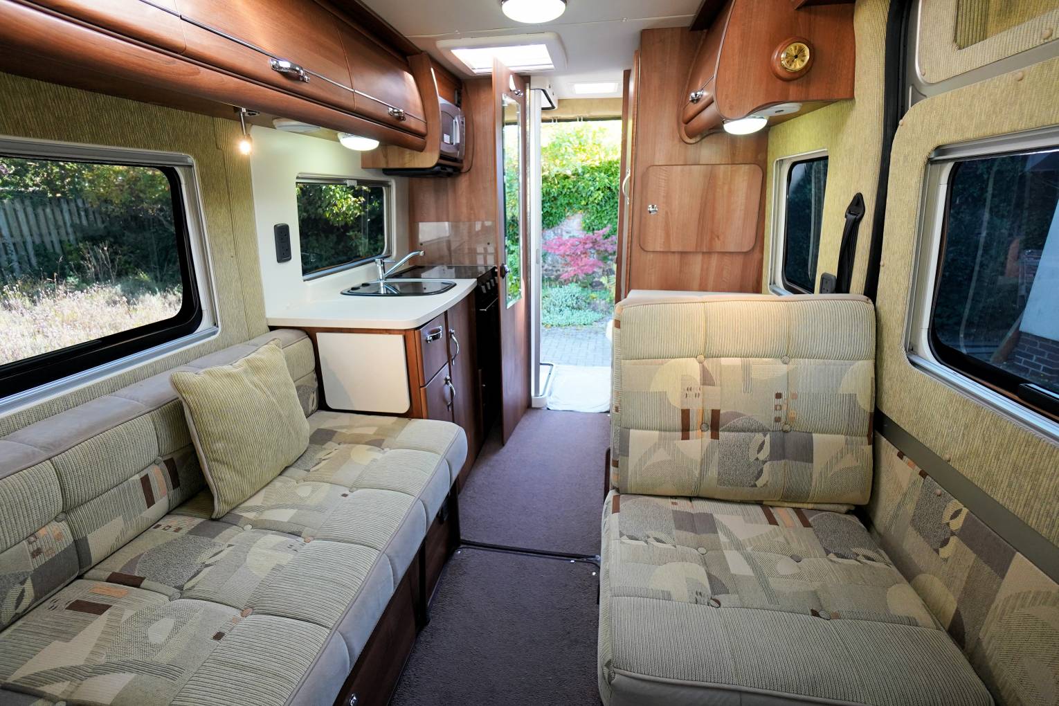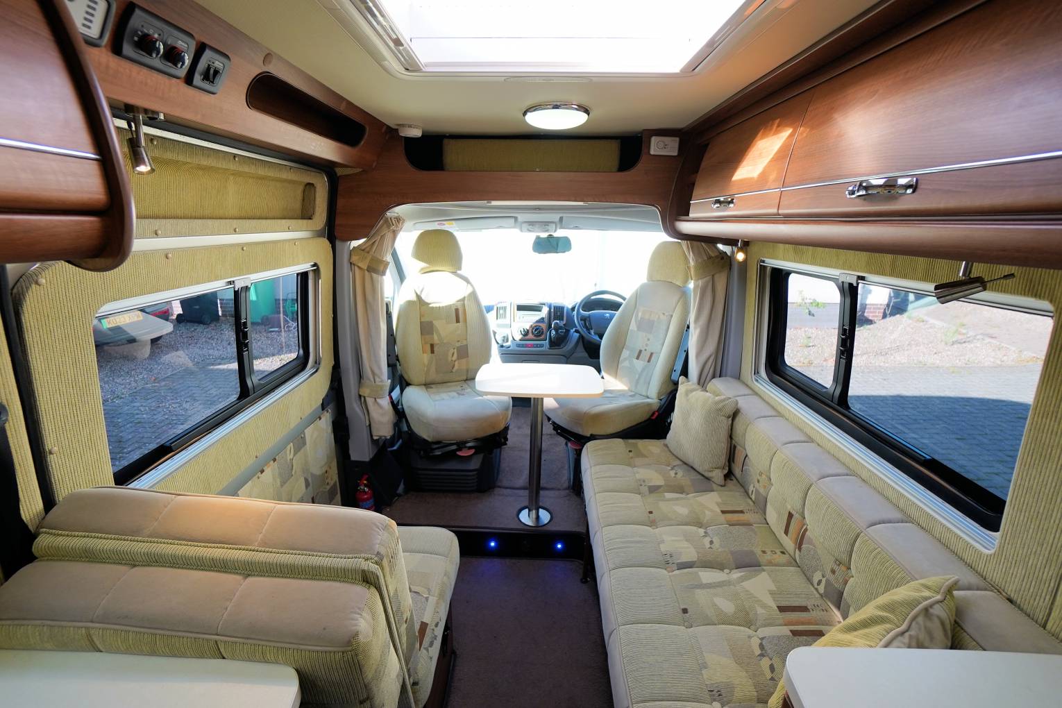 Based on a Peugeot Boxer with a 2.2 litre HDi engine and 6-speed manual gearbox, electric windows and mirrors, reversing camera, air-conditioning, cruise-control, steering-wheel controls, radio/CD player and 15” alloy wheels.