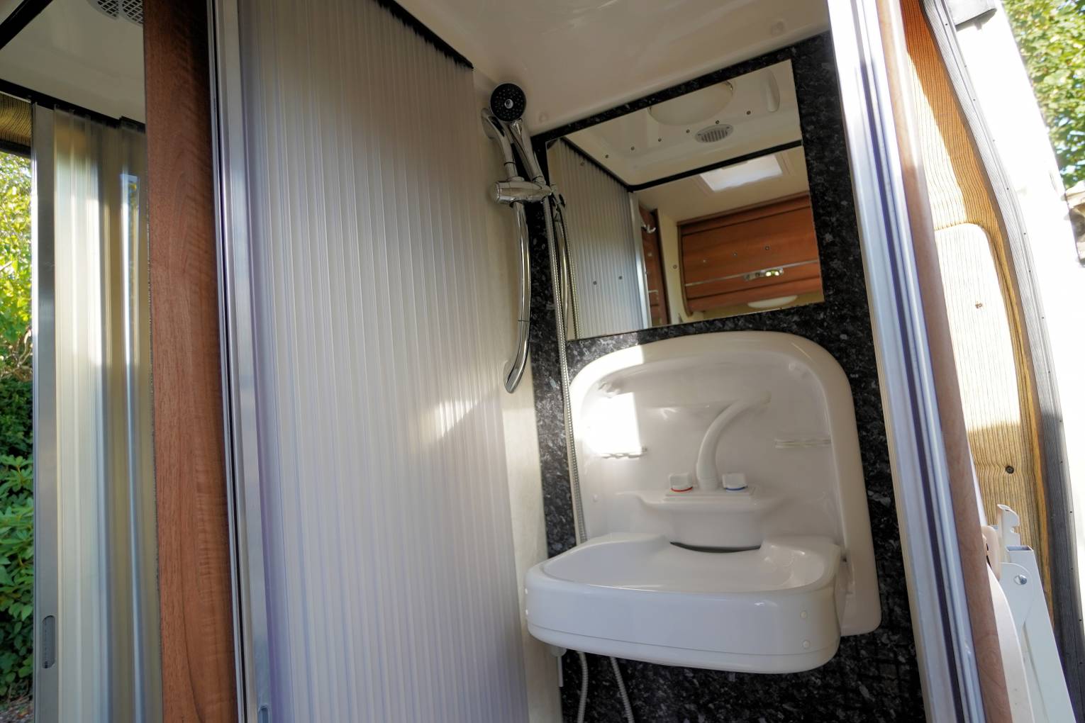 • Washroom with Thetford cassette toilet, vanity unit, basin and separate shower compartment