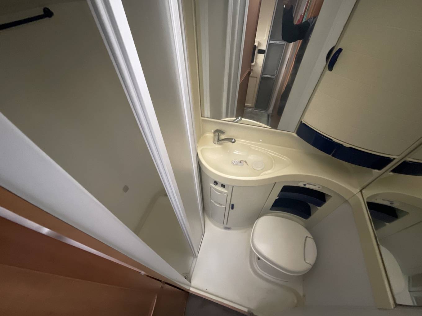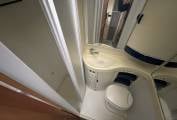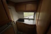 At the rear your compact kitchen features a 3 gas burner hob, sink, 3 way fridge freezer and a Microwave. The spacious washroom has a separate shower, vanity style wash hand basin and a cassette toilet.