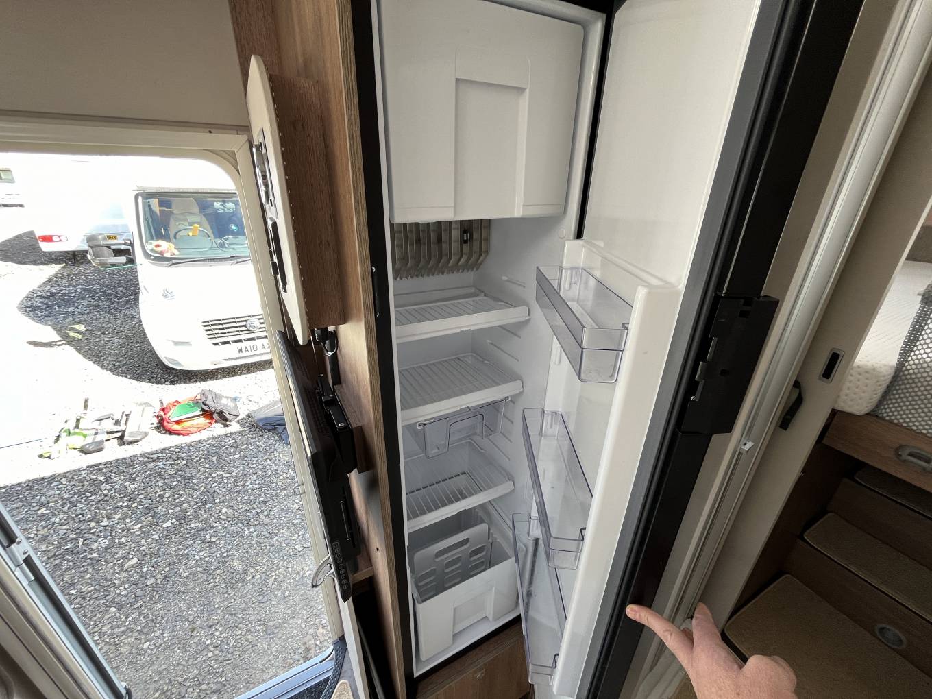 three-burner gas hob, oven, and a spacious fridge-freezer. The motorhome