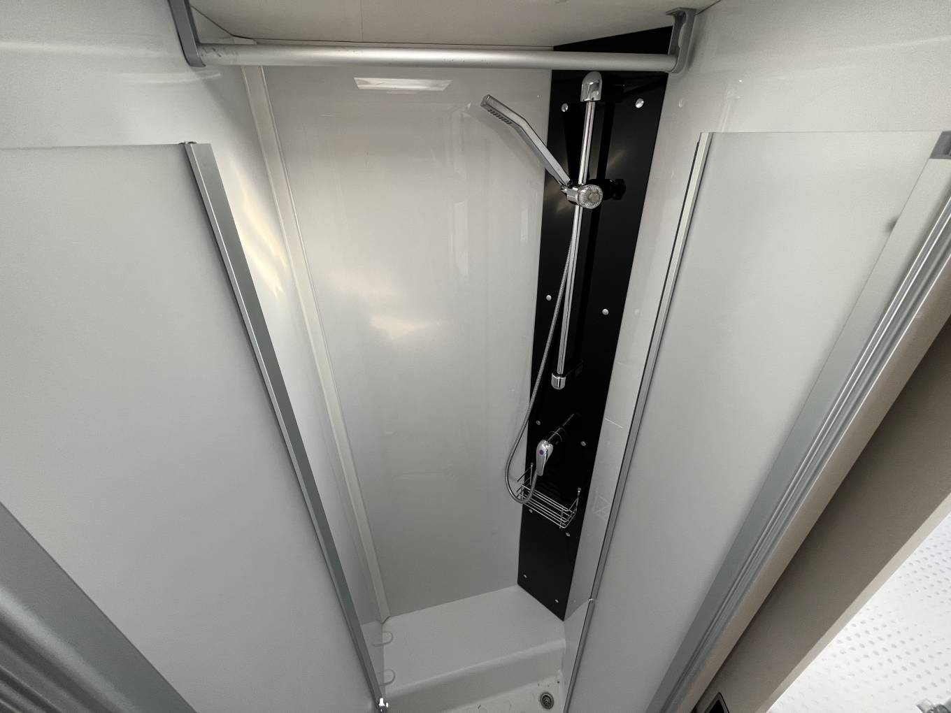 cassette toilet. The rear of the vehicle houses two fixed single beds, which