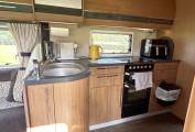 The kitchen is well equipped so you'll have no trouble keeping yourselves well fed on your adventures. There is a gas oven and grill, a dual-fuel hob with an electric hotplate and 3 gas burners and a microwave oven. The large fridge freezer has a door which opens from either side. There is a substantial amount of storage space in the cupboards, drawers and lockers for your cookware and crockery.