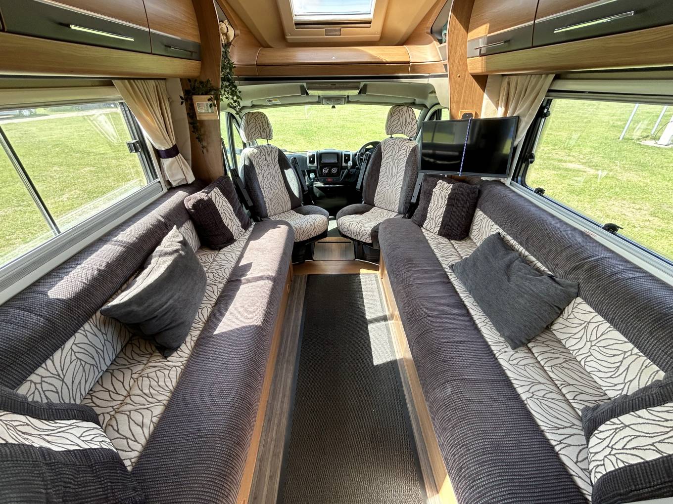 The lounge is spacious and airy and is perfect to relax in after a day out. The 2 long side facing sofas offer you the opportunity to kick off your shoes, put your feet up and relax with a glass or two. At 72 inches long the sofas can be used as 2 single beds and if you are particularly tall you can swivel the front seats around which increases the single bed length to 90 inches. Alternatively pull the sofas together and you have a kingsize bed.